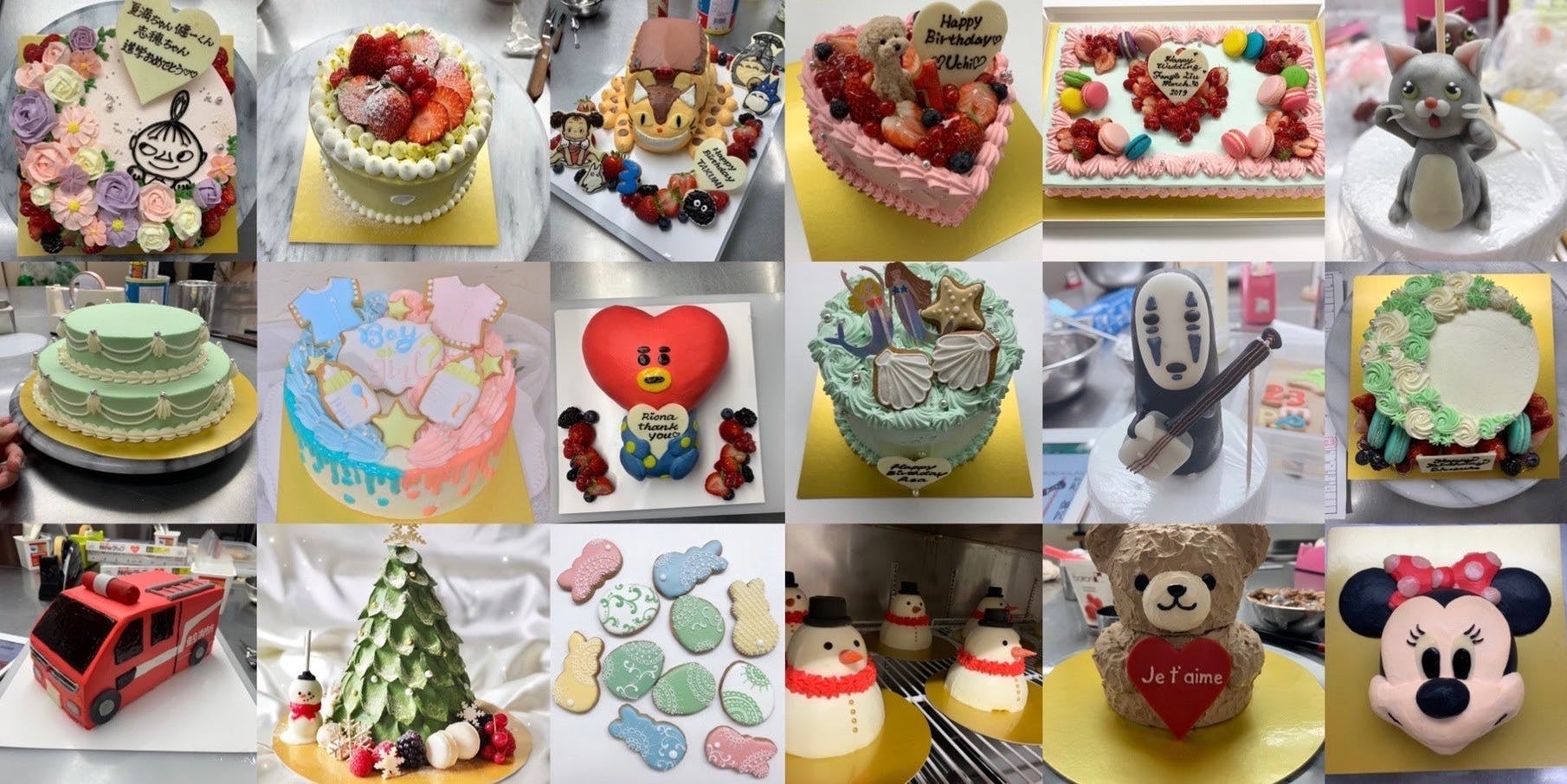 イラストケーキや、立体ケーキ、アイシングクッキー、マジパン細工など、、、時には某有名人のケーキなどを作ることも!