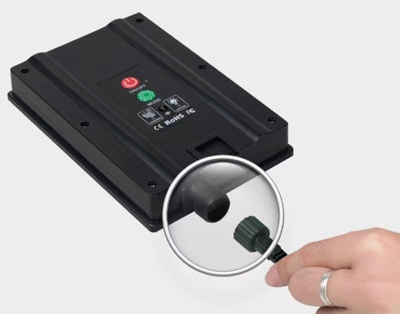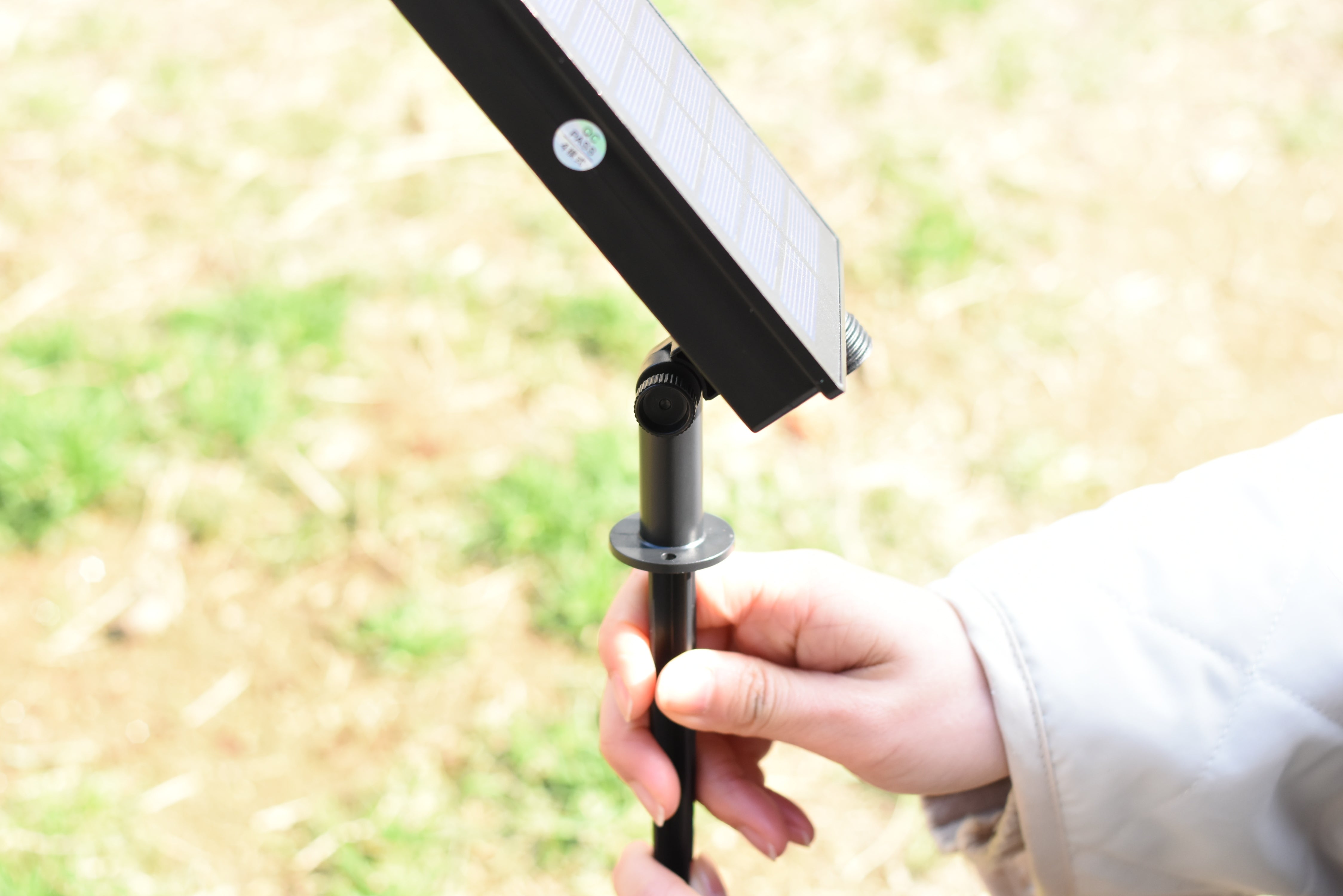 ソーラーパネルは支柱に挿して日当たりの良いところで充電してください。