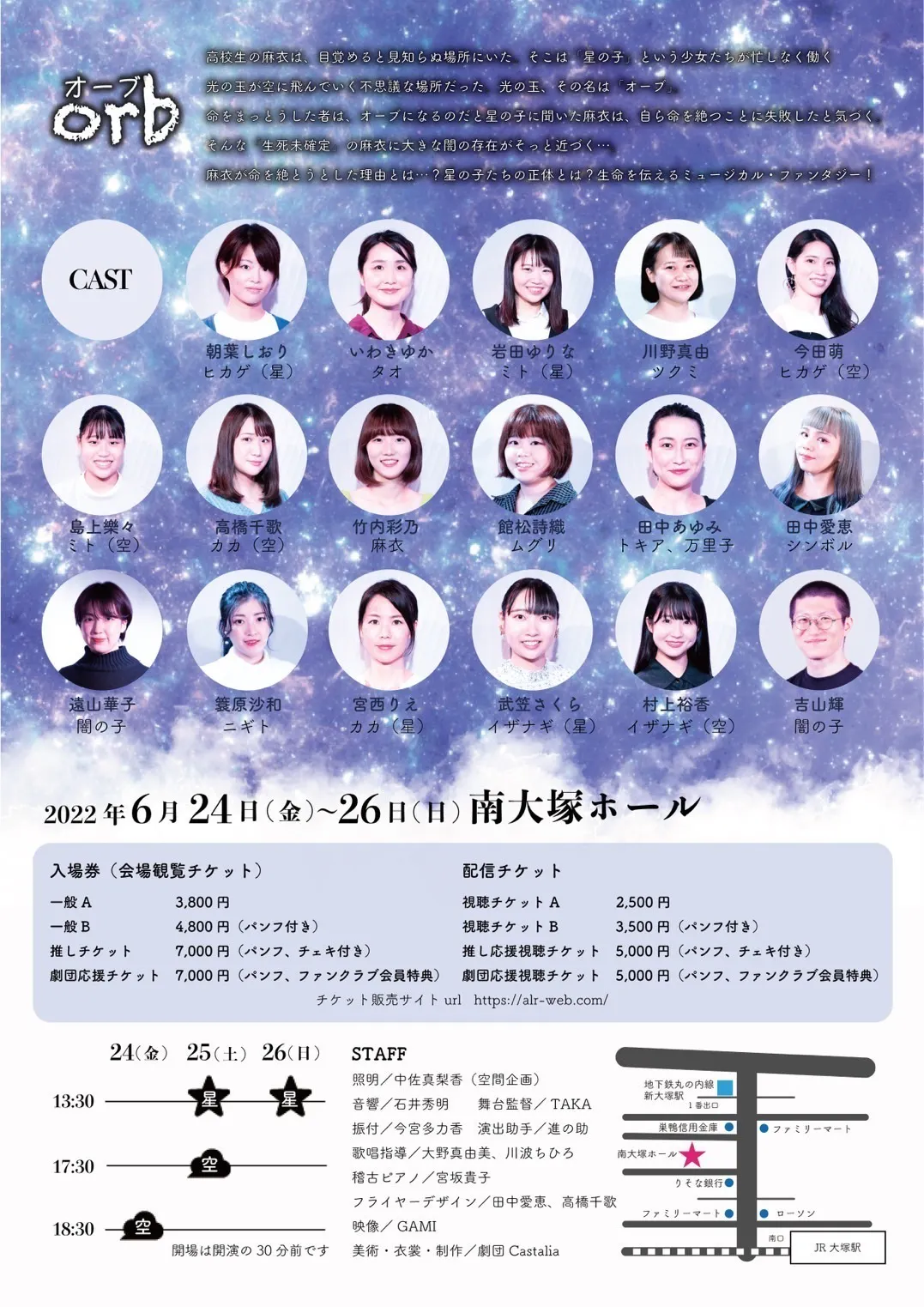 2022年6月24~26日にオリジナルミュージカル「オーブ」の公演を南大塚ホールで行います。