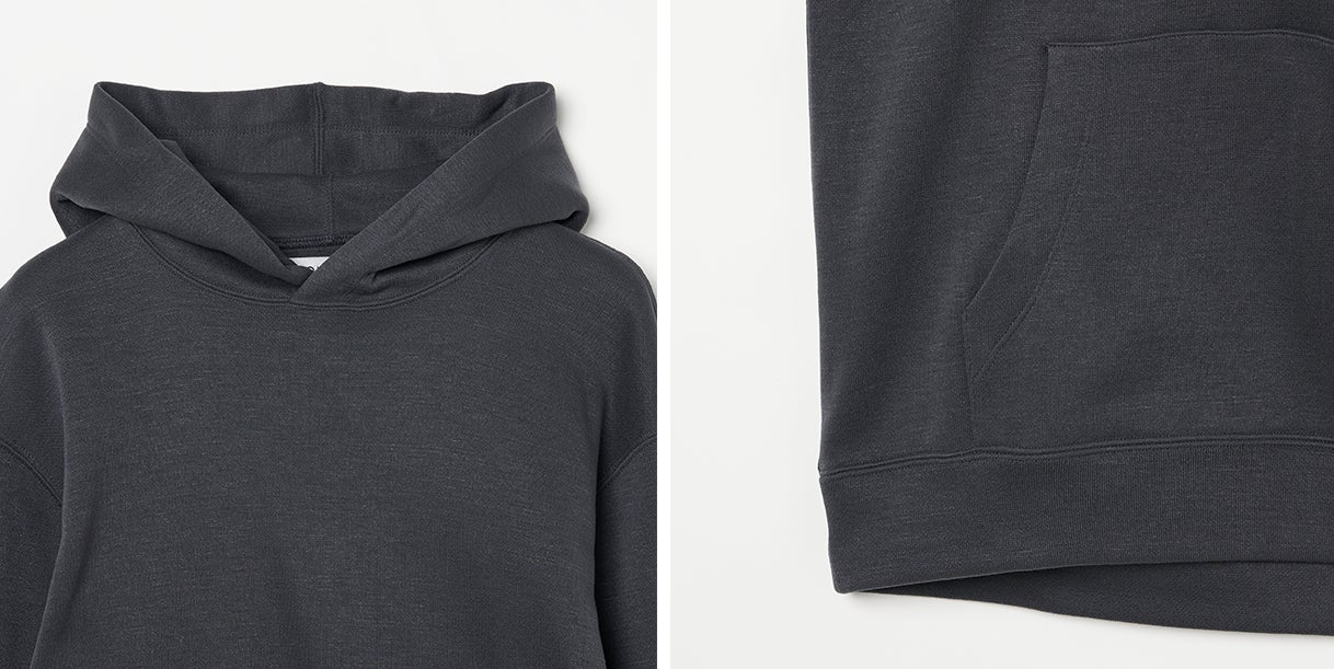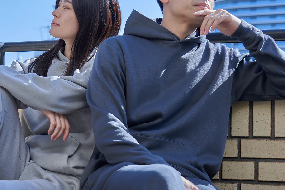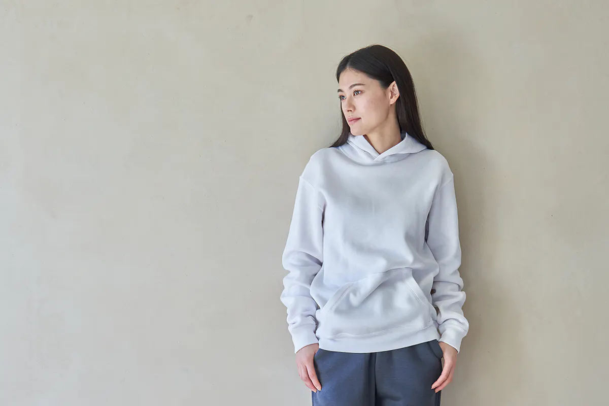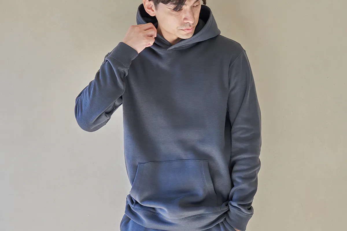 加えて、「エアフリーク®パーカー」では、機能性の革新だけに満足することなく、こだわり抜いた素材選定と加工による柔らかで心地よいフィールと、合繊とは思えない自然なテクスチャーで、とことん気持ちの良い肌触りと、生活に馴染むナチュラルで美しいテイストにもこだわり抜きました。