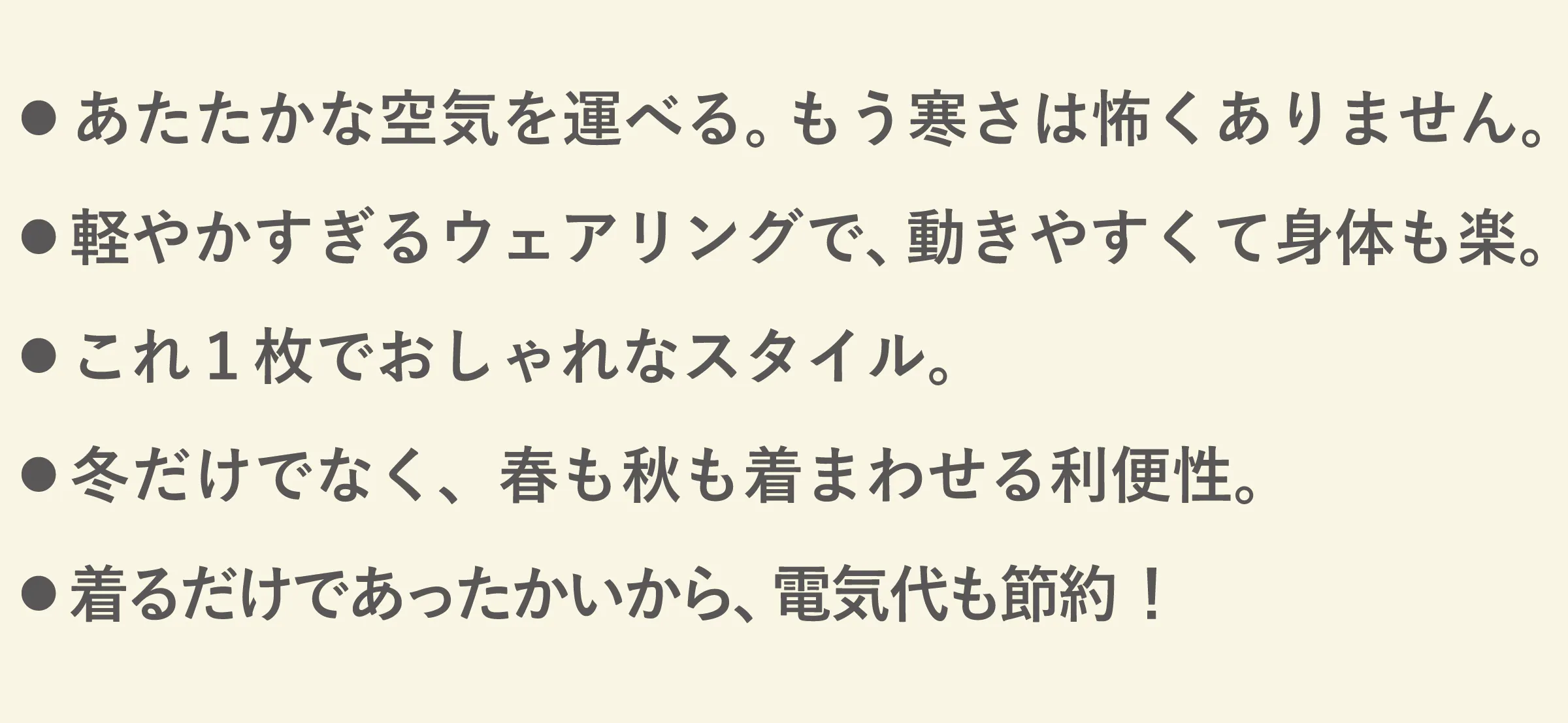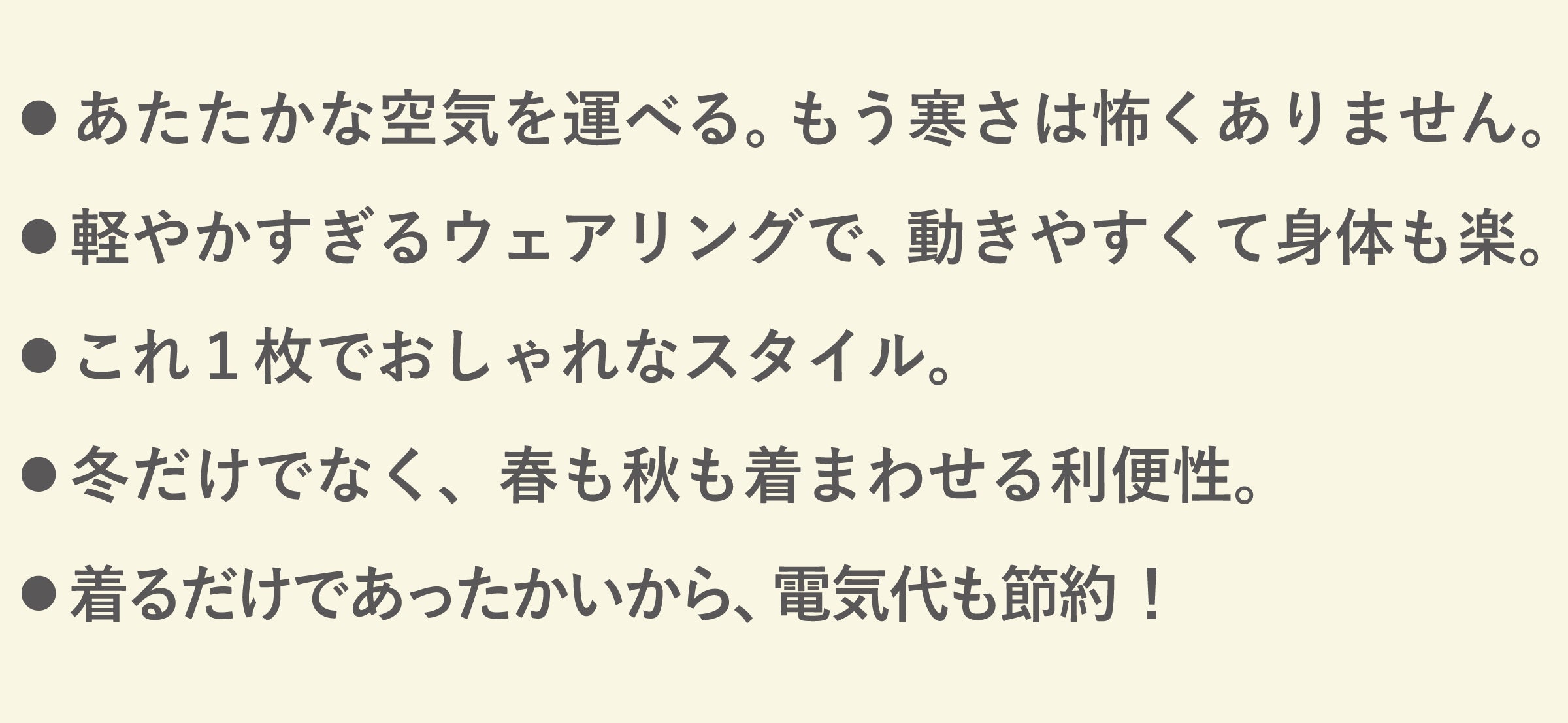 それは、いままでの「冬」が、寒さに服を重ねることが、どれだけ「重苦しい」ものであったか気づかせてくれるものです。