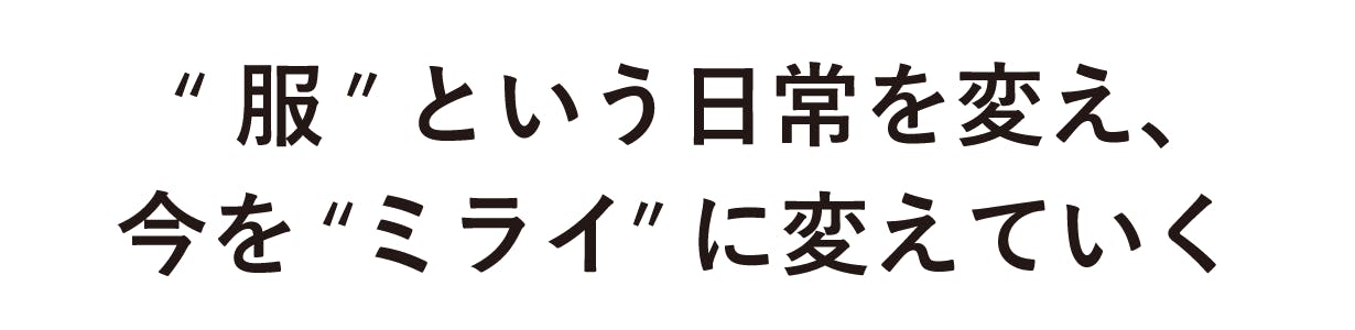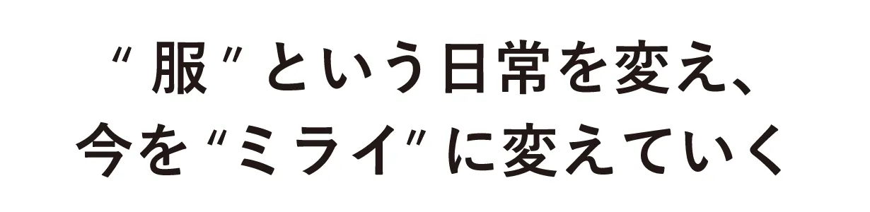 日常生活そのものである、「服」を変えることは、みなさまの生活をより豊かで幸せなものに、そして、「今」という日常を、美しき「ミライ」に変えることにつながると考えています。