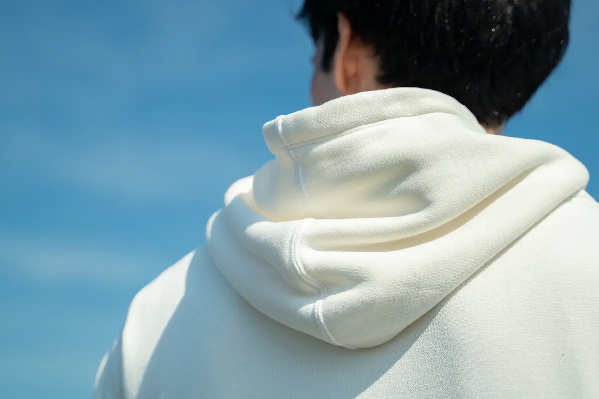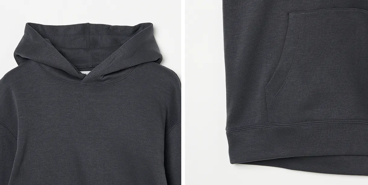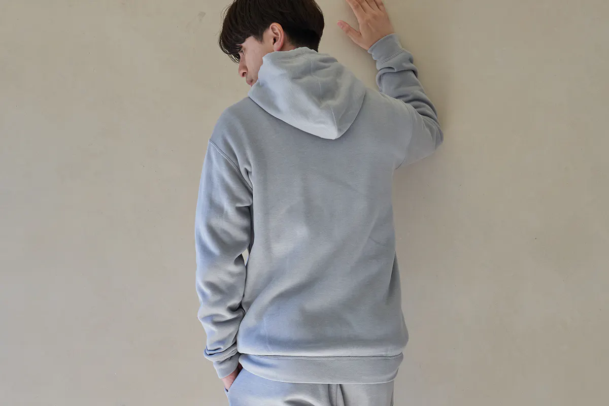 前回のプロジェクトではフードを絞る「紐付き」でしたが、多くのユーザーより「紐が邪魔/紐なしが好き!」とのお言葉をいただきましたので、今回は「紐なし」のよりシンプルなスタイルです。
