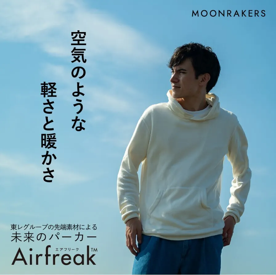 今回、わたしたち「MOONRAKERS」は、1昨年のローンチでたいへん多くのみなさまより応援をいただいた「Airfreak®(エアフリーク®)パーカー」の一般販売を開始いたしました。