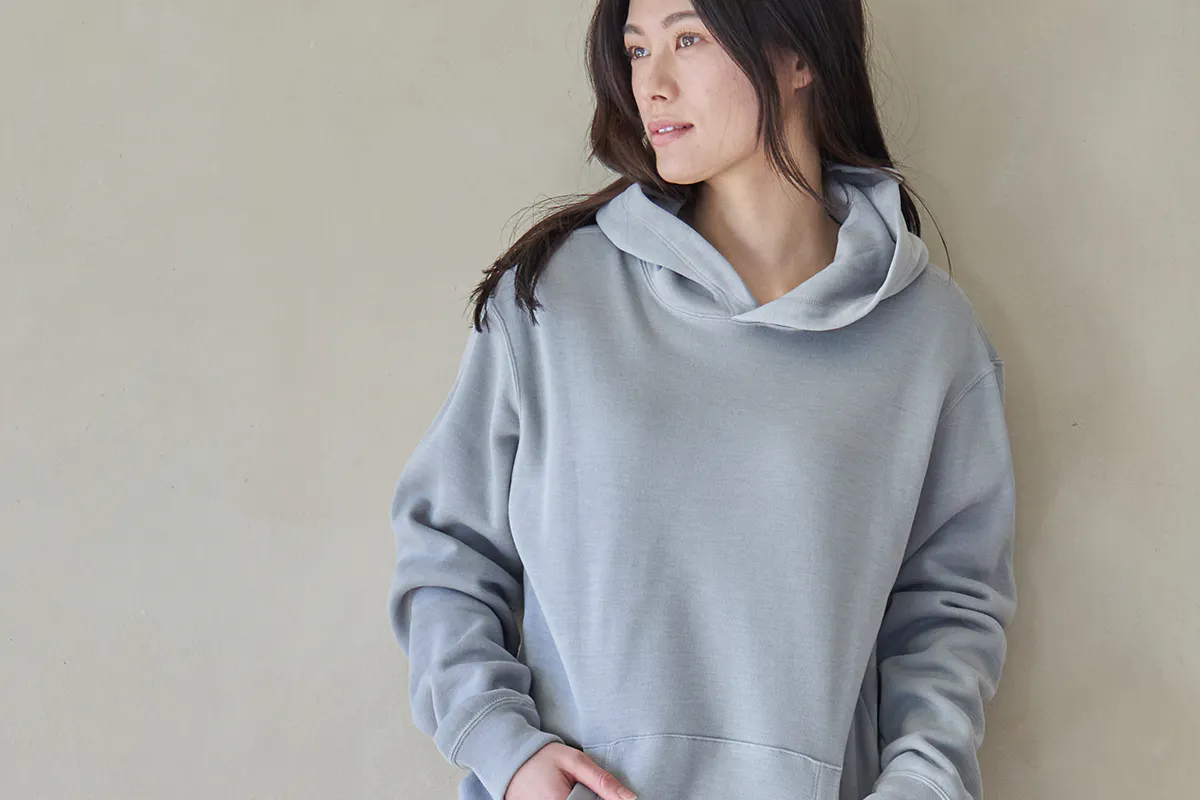 「エアフリーク®パーカー」は、まるで天然素材のような美しいテクスチャーで、合繊とは思えないナチュラルなテイストを再現。また、スタイル・カラーもクラシックスタンダードなスウェットをイメージしてデザインを行っており、カジュアルでオシャレな商品です。