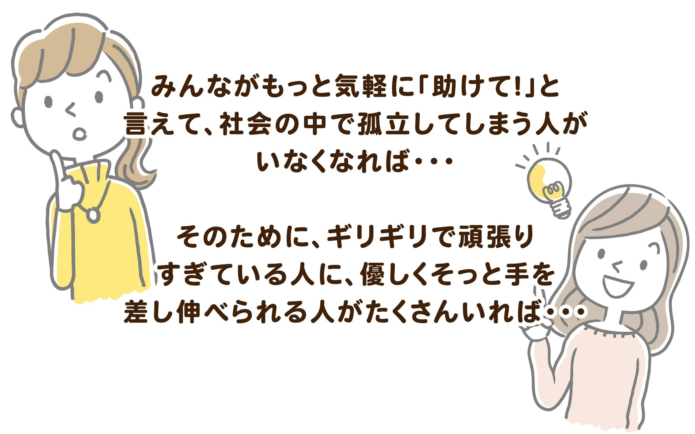 誰もが不安や悩み・心配事を抱えており、誰かに助けてほしいと思うことがあると思うのです。
