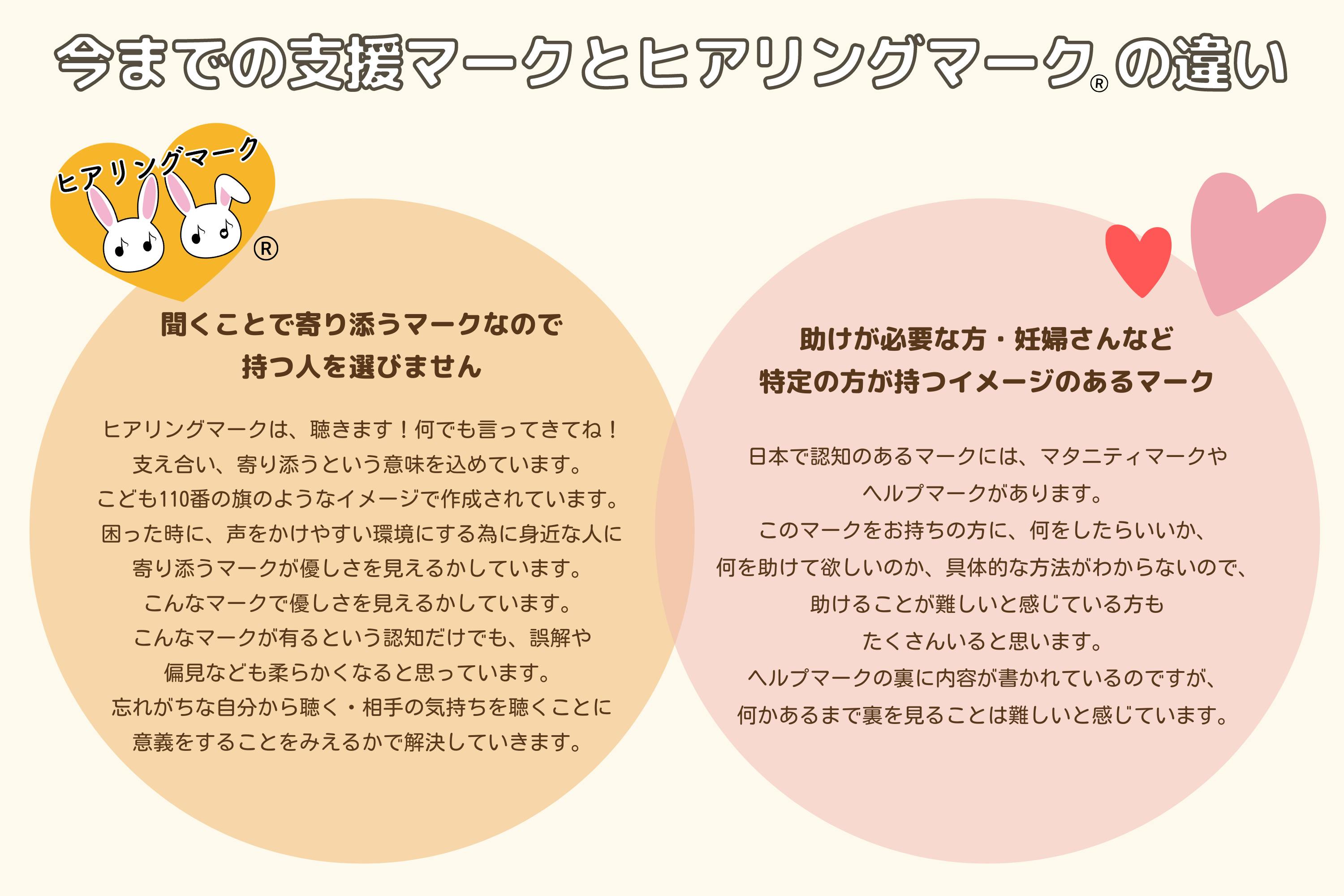 ヒアリングマーク®︎は、支援活動を広げることを目的として制作したマークです。