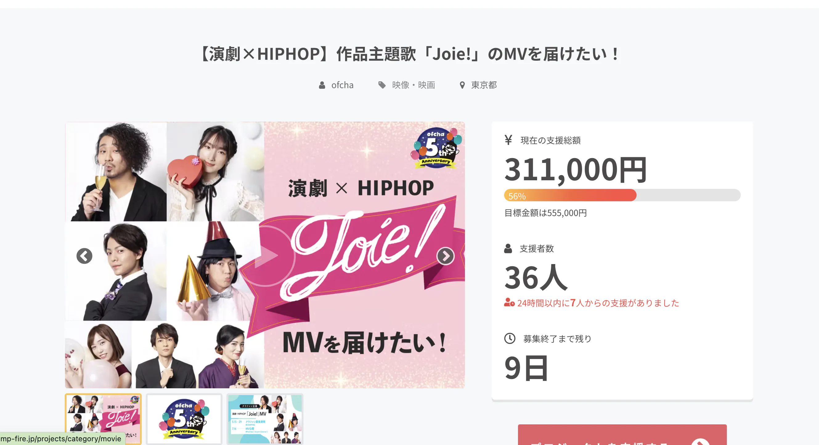 「Joie!」MVクラファンプロジェクト終了あと9日。