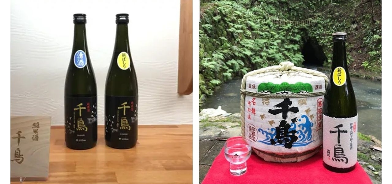 日本酒は初代から続く純米酒「千鳥(ちどり)」と、4代目が開発したピンクの純米酒「花神(かしん)」がメイン。名水百選のひとつでもある「観音水」を酒母の仕込み水に、宇和のやさしい軟水を酒の水に使っています。