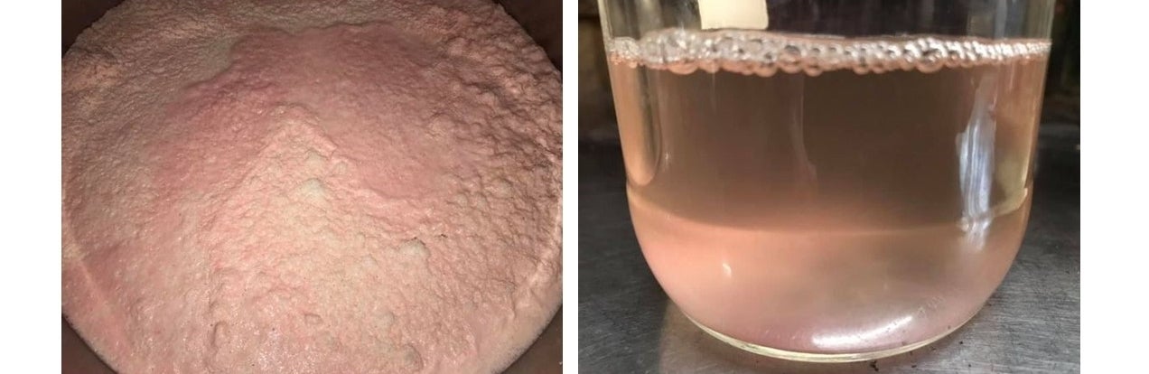 麹もできあがったお酒もピンク色の「花神」