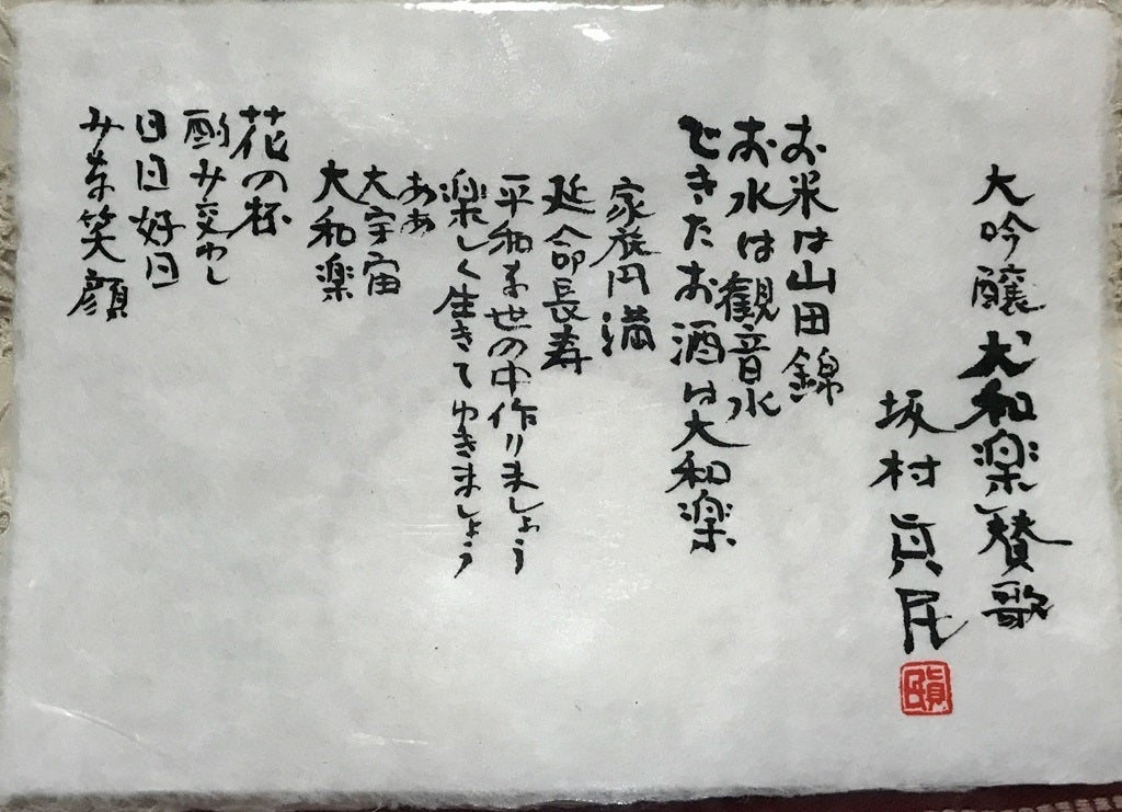 皆様、ご支援・応援を本当にありがとうございます!今現在、目標に対して進捗72%です!ここで、今回の「大和楽」についてお話したいと思います。画像はその昔、「大和楽」を初めて造った際に坂村真民先生にいただいた詩ですが、当時は酒米に山田錦を使った純米大吟醸でした。本来であれば、忠実に再現をするべきなのではありますが、現在の当蔵や日本酒業界を取り巻く環境や実情、また酒造りの技術や消費者の趣向など諸々の事を考えた結果、宇和の軟水の滑らかさと柔らかさを活かす為に米は愛媛県産の酒造好適米「しずく媛」を使用する事と、吟醸香のような香りはとても大事だけれども、米の旨味を最大限に表現したいなどを考えた結果「特別純米酒」で造ろうという事に致しました。(とはいえ、恐らく吟醸に近いような造りにはなります)絶対に美味しいお酒を造りますので、引き続き応援をお願い申し上げます!!