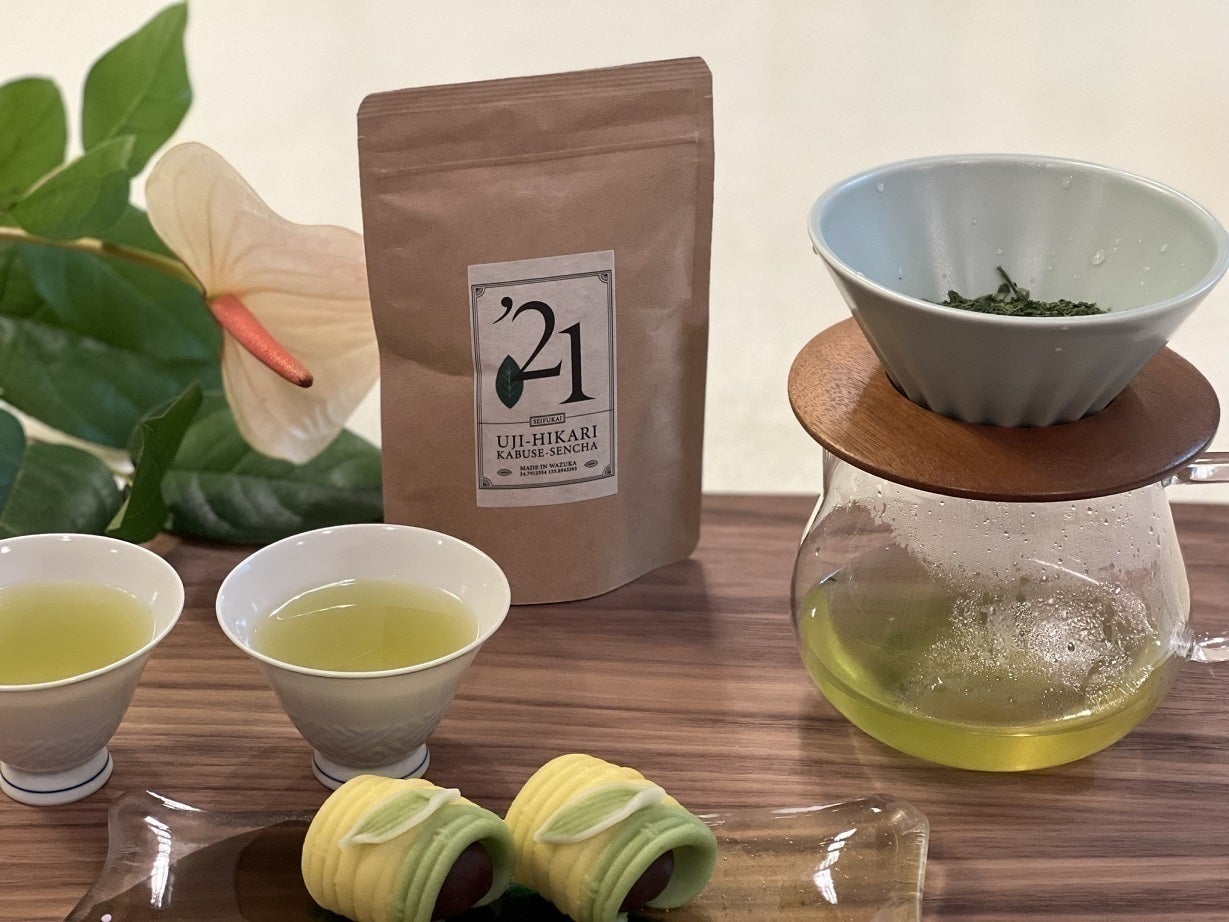 茶葉は一席ごとに異なる宇治茶の最高峰であるプレミアム手摘み玉露・プレミアム玉露を各種用意しており、和菓子も1年前から手掛けたスペシャルな和菓子を準備いたします。