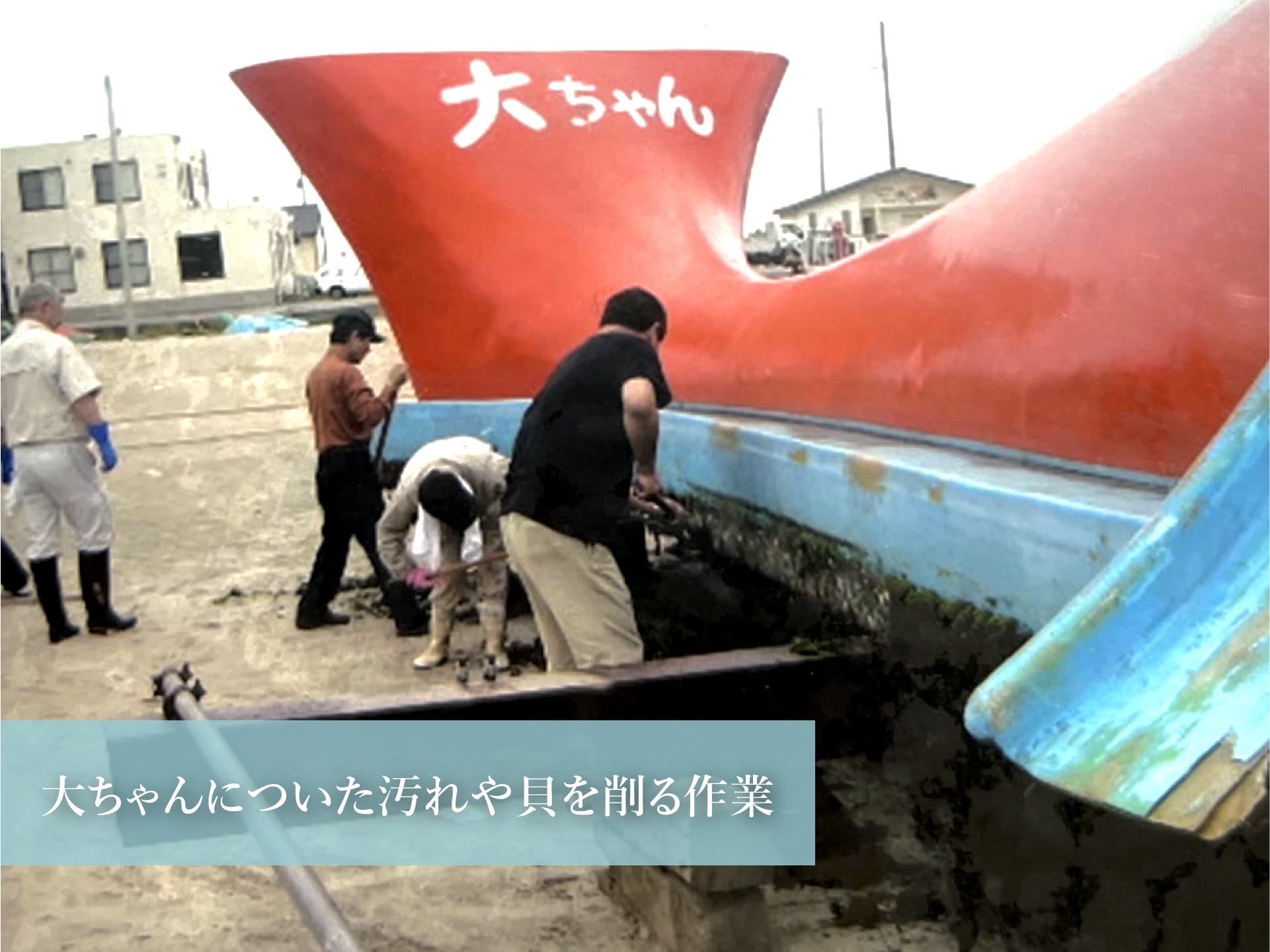 これまでに大ちゃんは、台風や津波で幾度となく流され、堤防に打ち付けられて損傷してしまったこともありました。