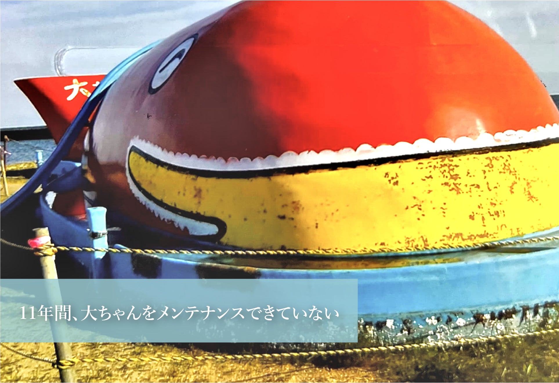しかし、近年の景気の低迷や東日本大震災、コロナ感染症の追い討ちもあり、この11年間修理の予算を立てることができていません。大ちゃんの塗装は剥げ、見すぼらしい姿になりつつあります。