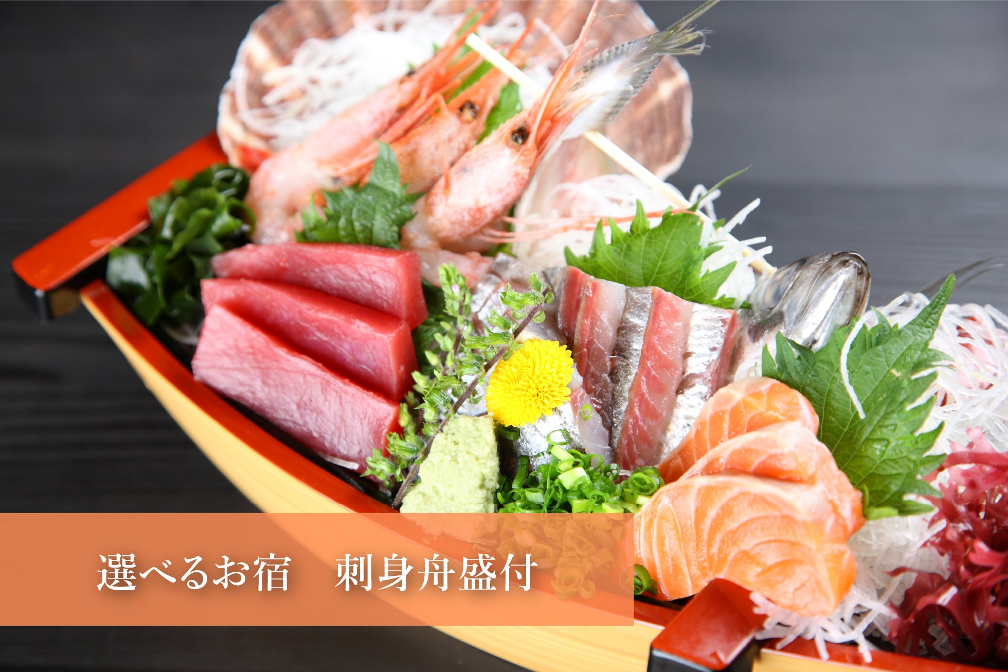 10万円:選べるお宿 刺身舟盛付き 「2名様1泊」または「御食事4名様(宿泊無し)」