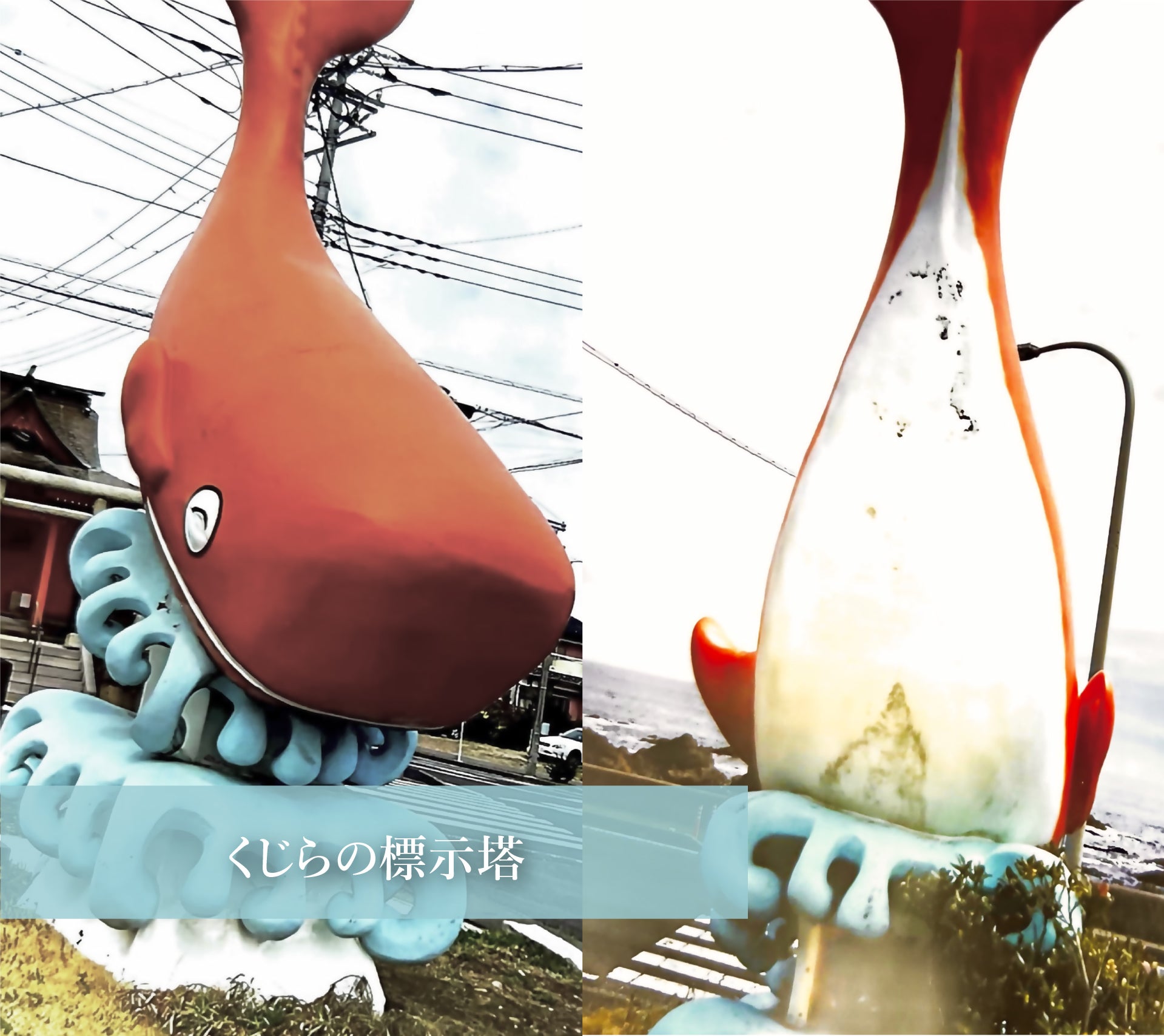 海岸沿いにある、標示塔(2箇所)のくじらの標示塔