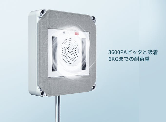 20000RPMの強力モーターが内蔵され、3600Paの超強力な真空吸引力によってガラスにぴったり吸着し、稼働時に窓から外れてしまう心配を最大限に軽減します。