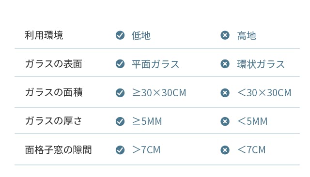 A:厚さ≥5mm、面積≥30×30cmの平面ガラスにご利用ください。