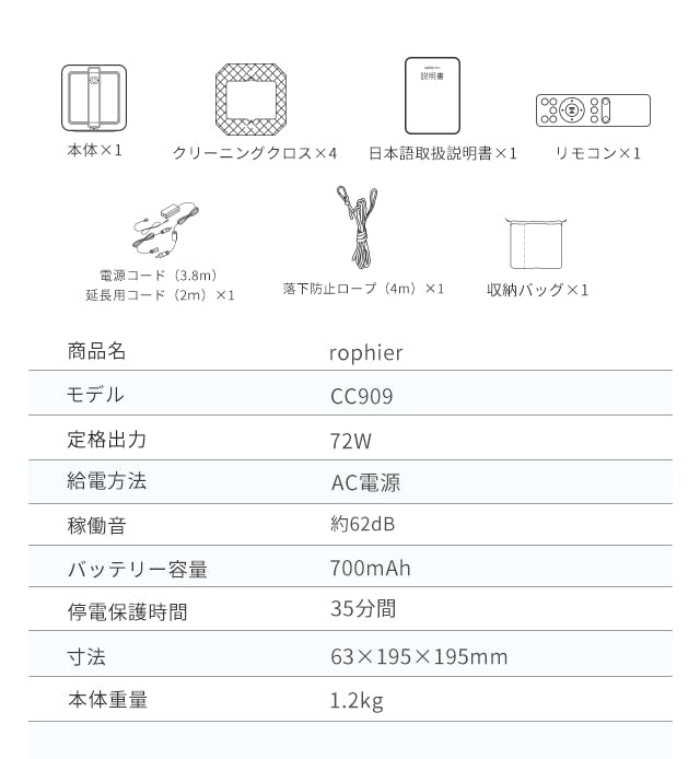耐荷重50kgの落下防止ロープが付属され、万が一バッテリー切れで窓から外れてしまっても、地面への落下を防ぎ、人損・物損を避けることができます。