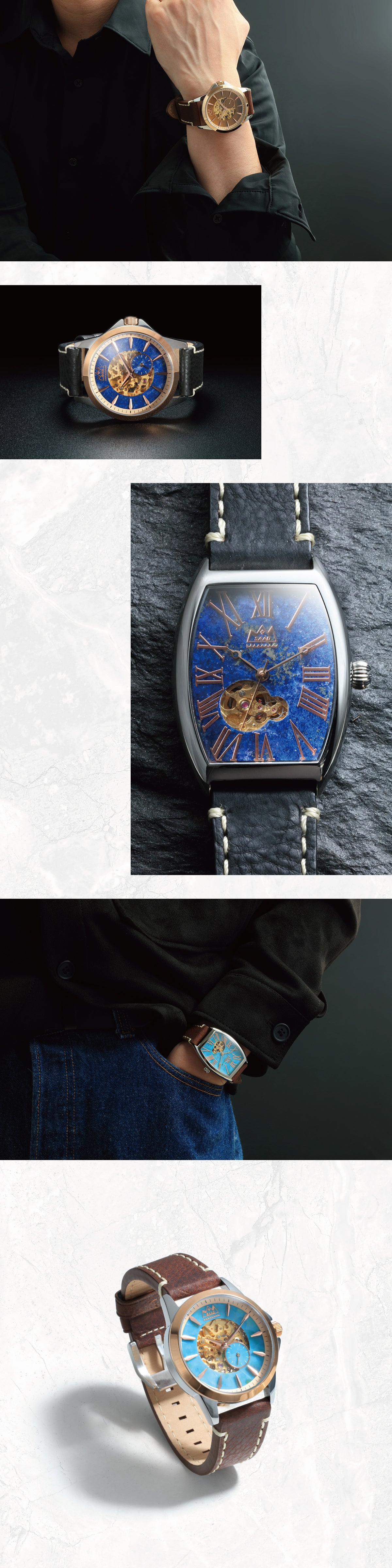 天然石を加工しムーヴメントに使用した、上品で革新的な腕時計です。