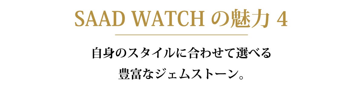 皆様のライフスタイルに寄り添うことを大切にしているSAAD WATCHでは、多数のジェムストーンからご自身のスタイリングに合わせたモデルをお選びいただけます。