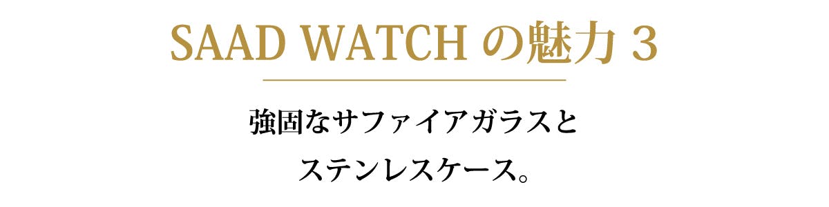 SAAD WATCHでは、フロント面・バック面ともに耐久性に優れたサファイアガラスを使用しています。