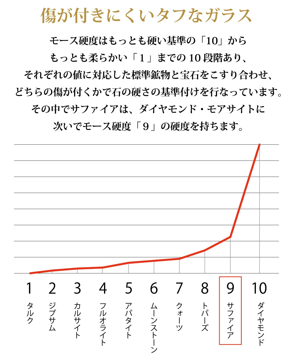 ■サファイアガラスの強み1/硬度が高く、傷に強い