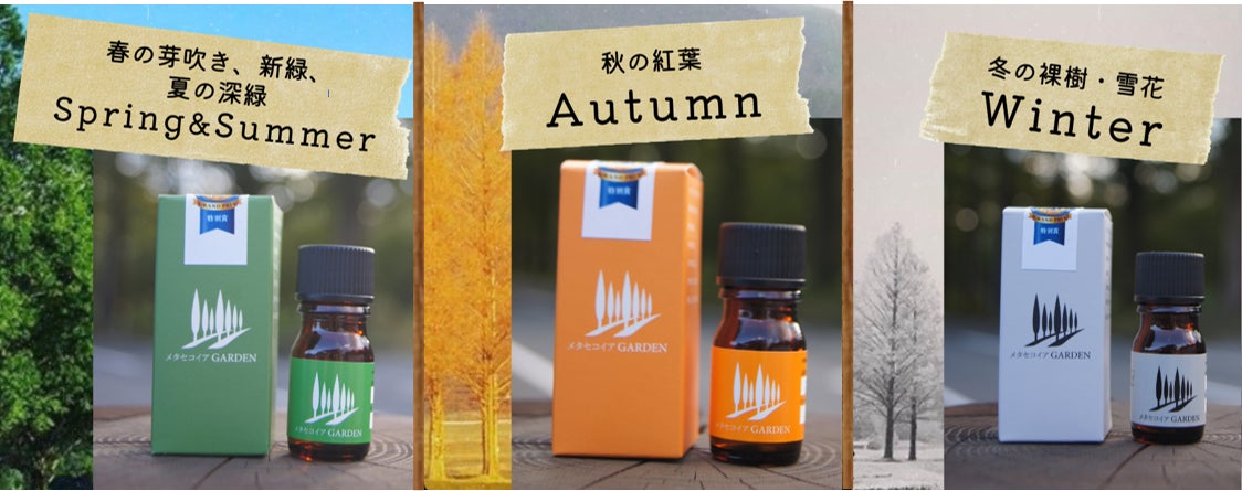 春夏・秋・冬 3種類の香りをメタセコイア並木道の香りとしてイメージし調香しました。