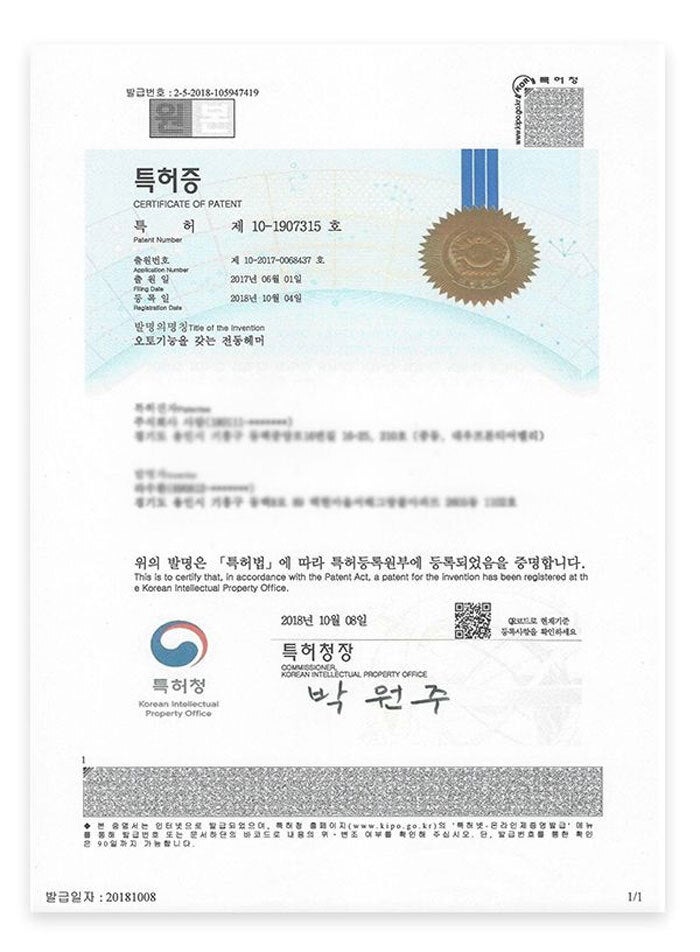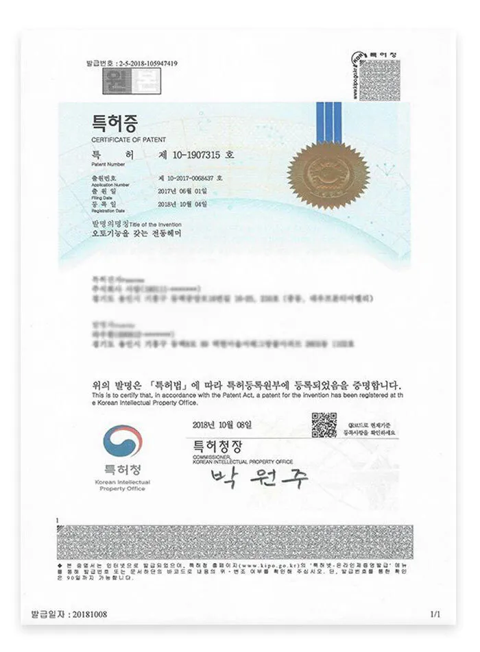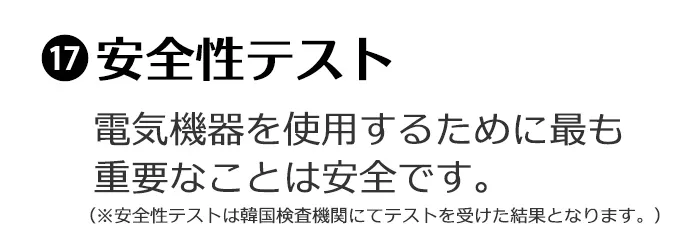 韓国の機械電気電子試験研究所で安全性テストを受けた製品です。