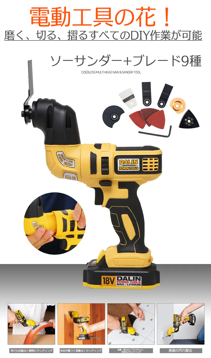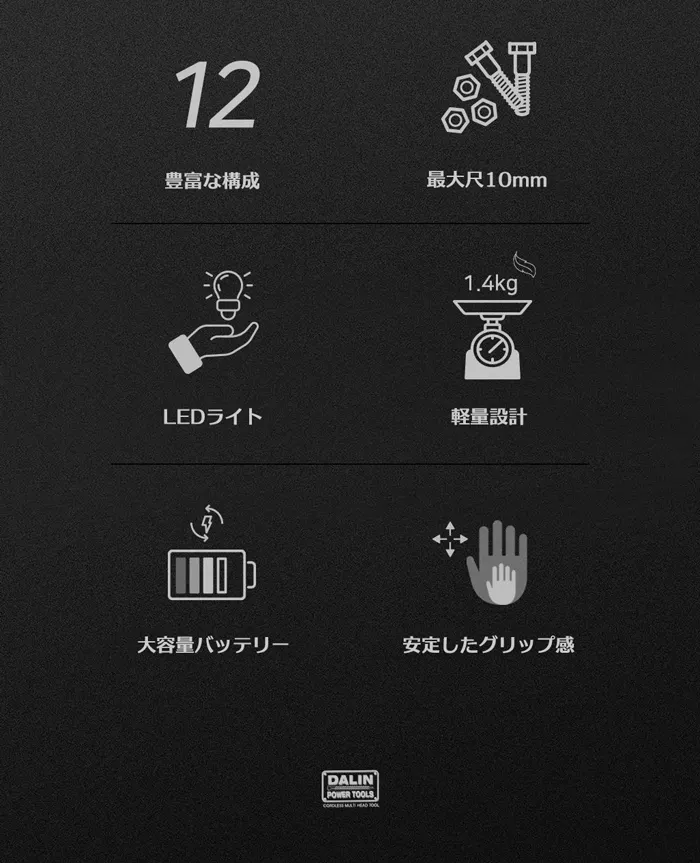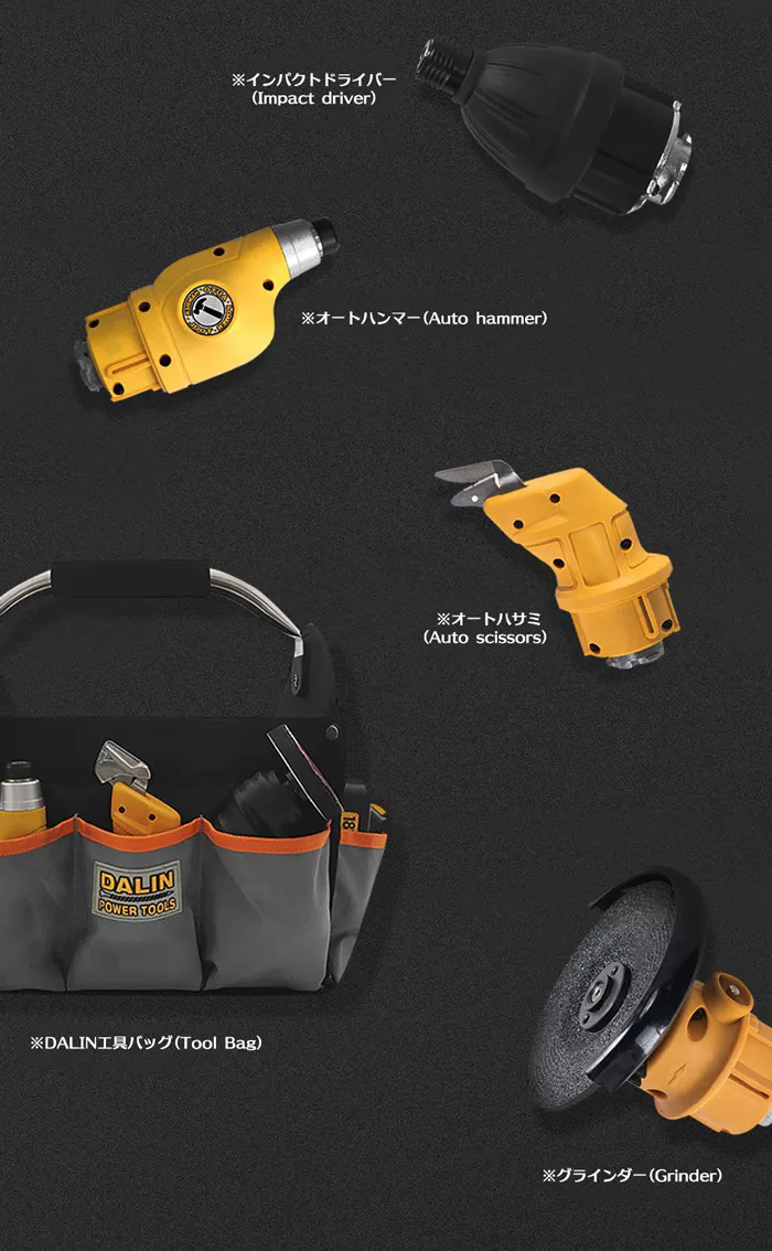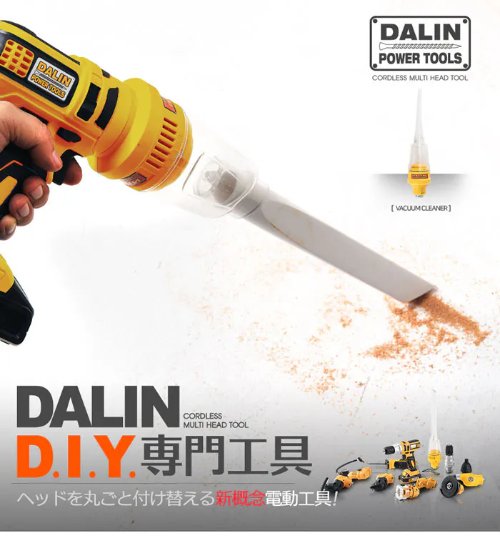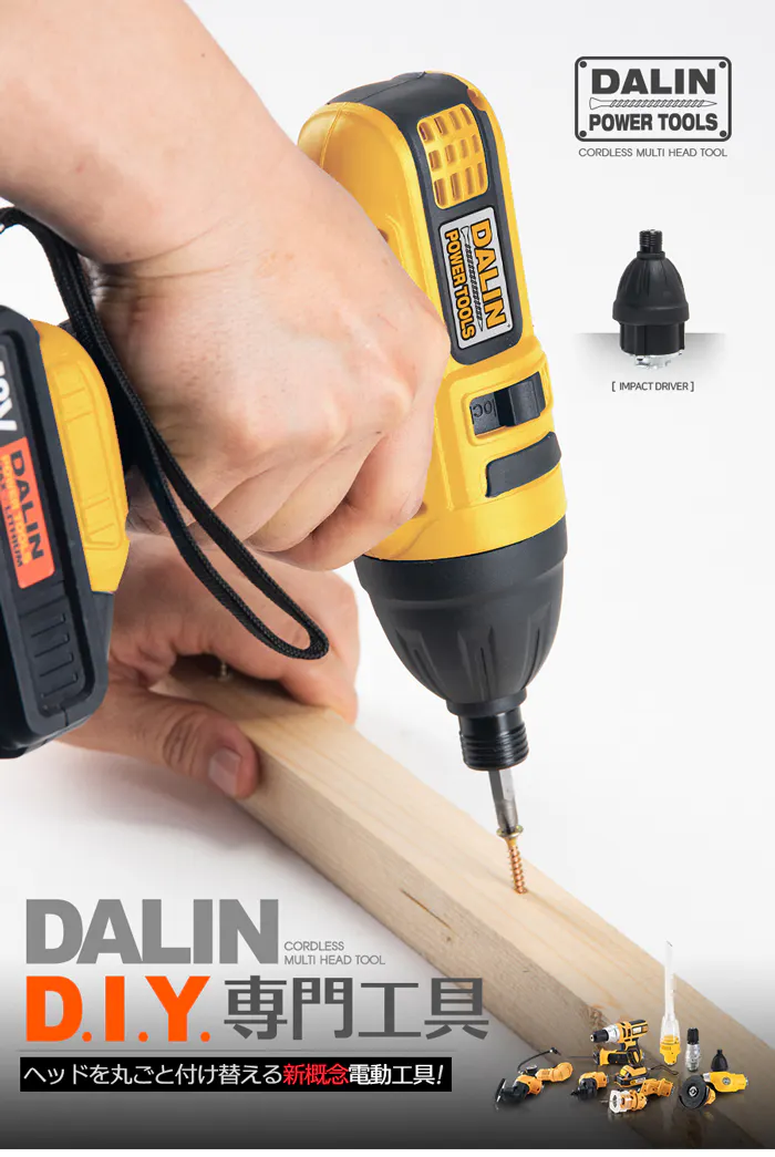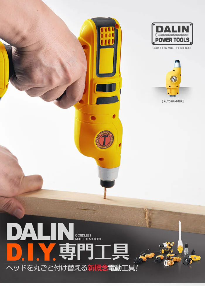 電動工具の目的は目的を達成できる機能、いわゆる作業能力です。今までの電動工具は一つの目的を達成するために作業能力を向上させてきた製品です。DALIN POWER TOOLSは電動工具の使用目的範囲を広げて作業能力はもちろんマルチに使用することができるヘッドを開発してまいりました。