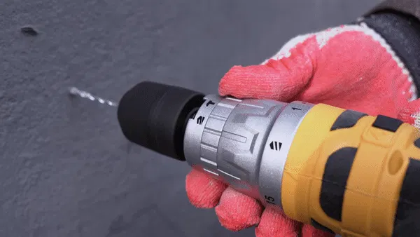 コンクリート壁や硬い場所に穴を開ける時!力が足らないと思えたら、ハンマードリルモードに変えると簡単に開けることができます。