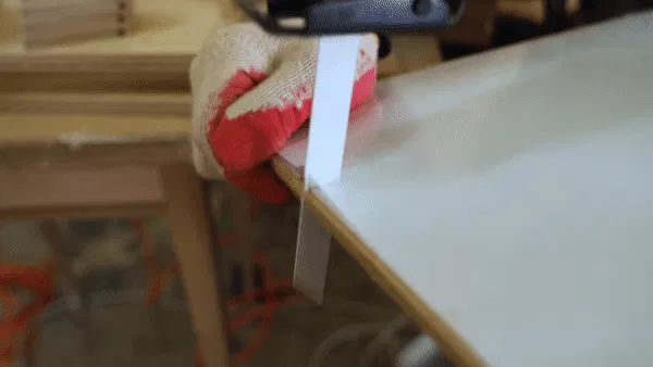 とてもスムーズにジグソーヘッドに切断されていく木材板!