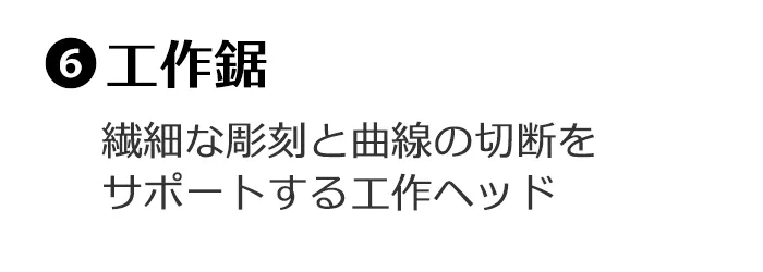 ジグソーヘッドの強くてなめらかなスローモーション動き!この動きで正確かつ簡単に切断をします。