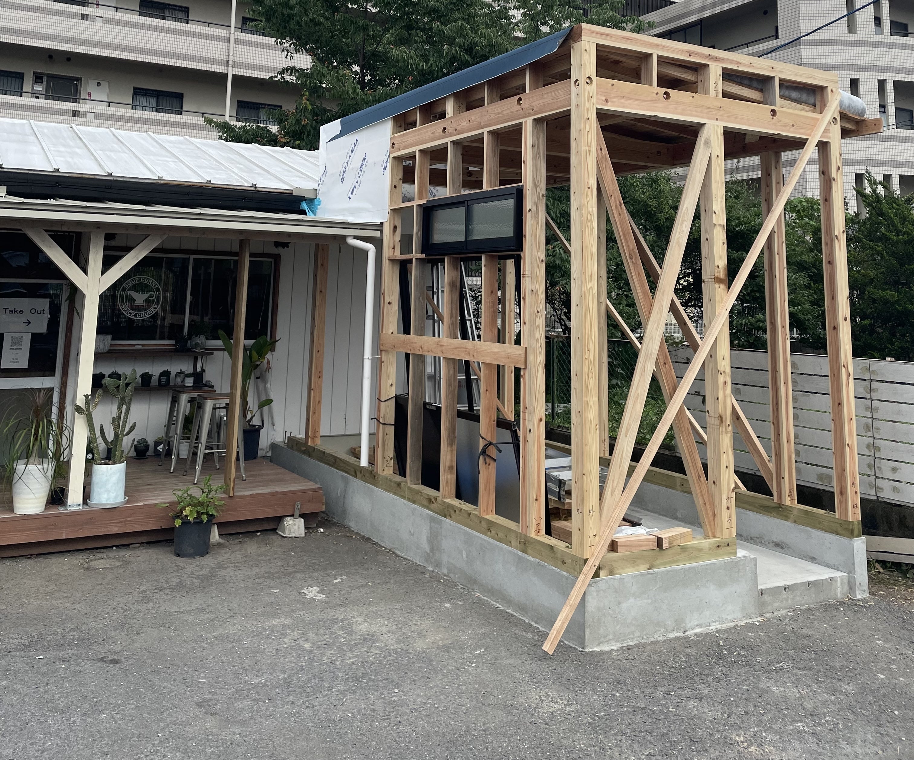 真空パック製造専用の厨房を増築中です。ここに新しい機材を入れて、専用工場に。ご来店のお客様にはしばらくの間ご迷惑をおかけします。申し訳ございません。完成が楽しみです^_^