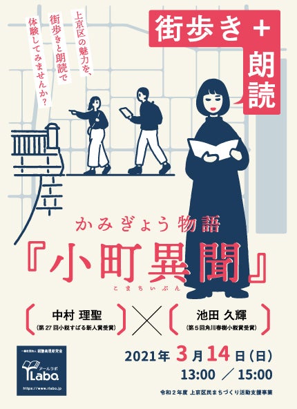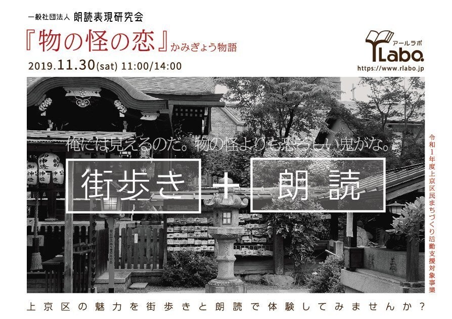 実際に上京区の街を歩き、その地域に関する物語を朗読するという体験型のイベント。 ガイドはNPO法人京都観光文化を考える会・都草が担当。上京区まちづくり支援事業(2018年度、2019年度、2020年度)に採択。