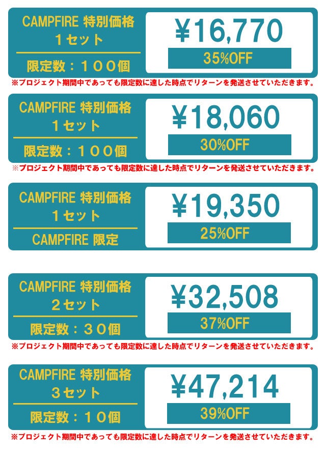リターンは基本的にプロジェクト終了後に発送をさせていただきますが、限定数があるリターンについては、プロジェクト期間中であってもご支援が限定数に達したその時点で、リターンの発送をさせていただきます。