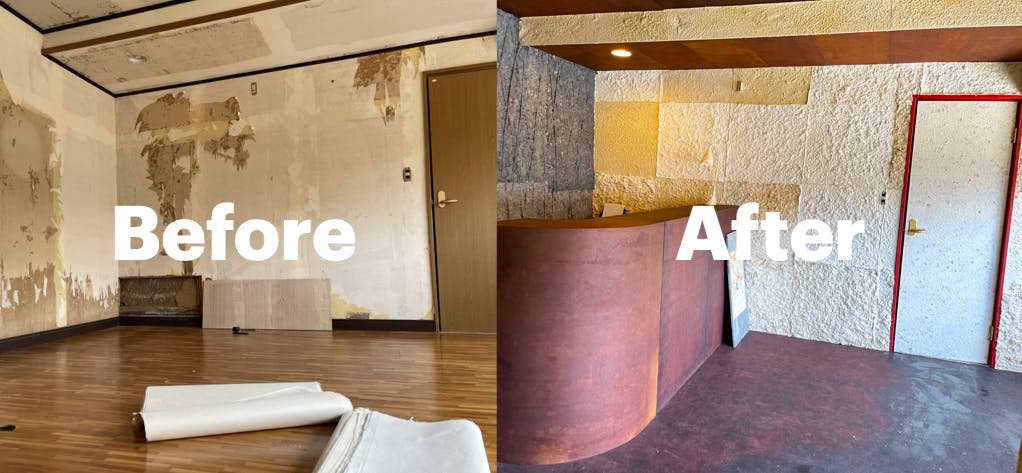 BeforeとAfterを見比べてみてください。4面の壁全てが異なる風合いに。これも全て和紙です。