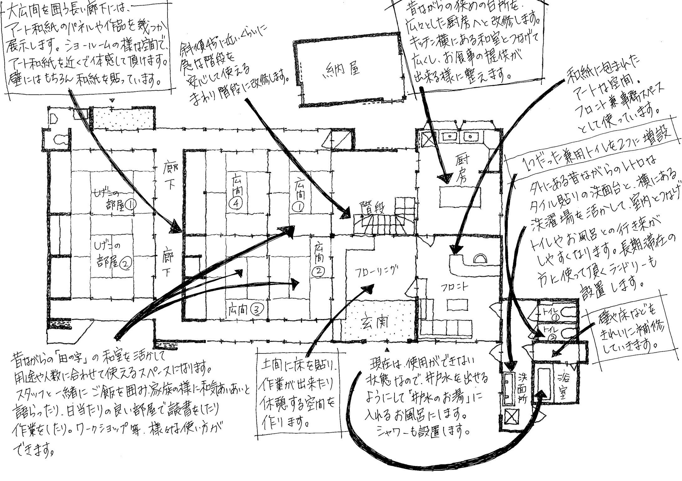 • 【和紙にまみれた、他にない魅力的な滞在施設】を目指して取り組んでいきたいと考えています。