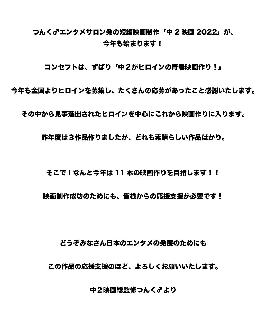本作品は、つんく♂さんが開催いたしました中2映画プロジェクトにて選ばれたヒロイン、そして監督公募より選ばれた監督がつんく♂さんの指導のもと映画を制作いたします。