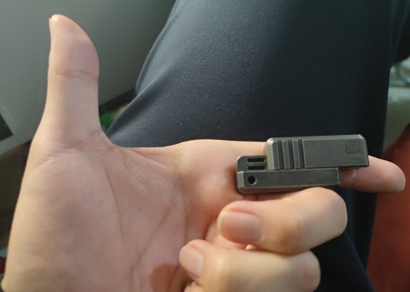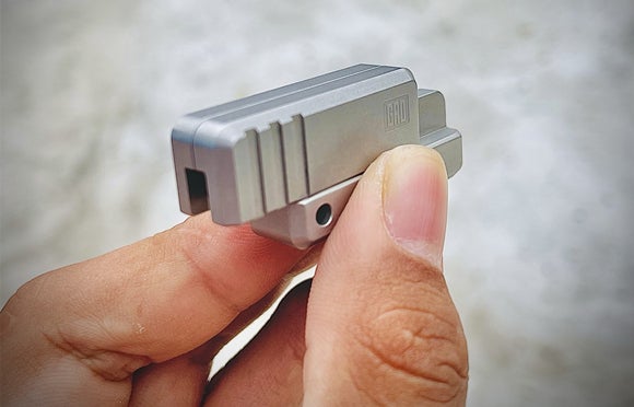 ピストルのスライドを引く・戻すという動作を再現しており、しかも持ち運びができるガジェットグッズです。