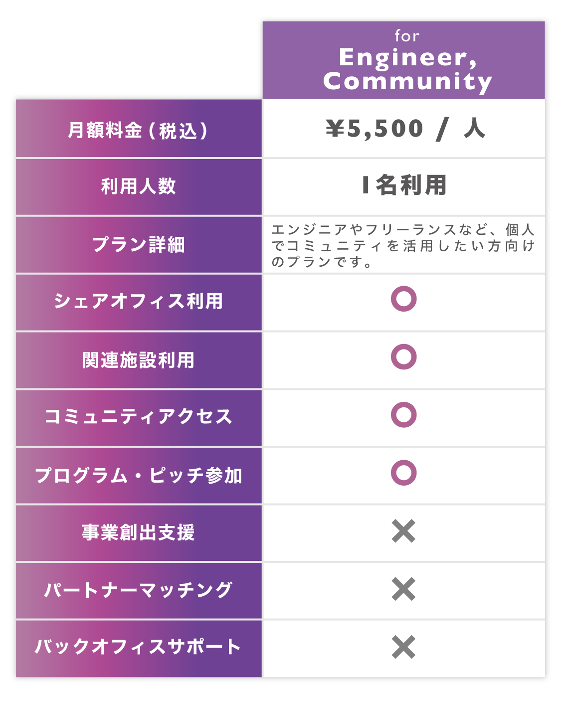 起業家、エンジニア、外国人、デザイナー、進出企業、地域、学生、連携パートナーなどといった多様なコミュニティにアクセスできます。専門的な知識を持つメンター・士業・協業パートナーなどとのマッチングで、事業創出もサポートします。