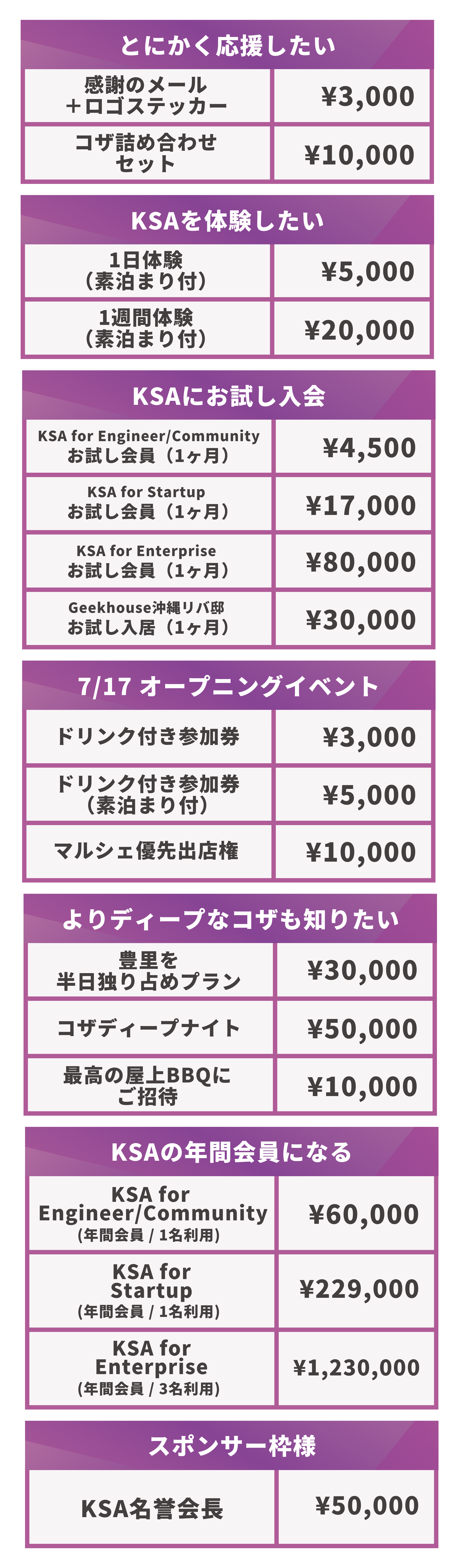 コザスタートアップ商店街のお試し会員・スポンサーなどを含め、これから1人でも多くの方に「コザ」に触れていただくためのリターンをご用意しました!