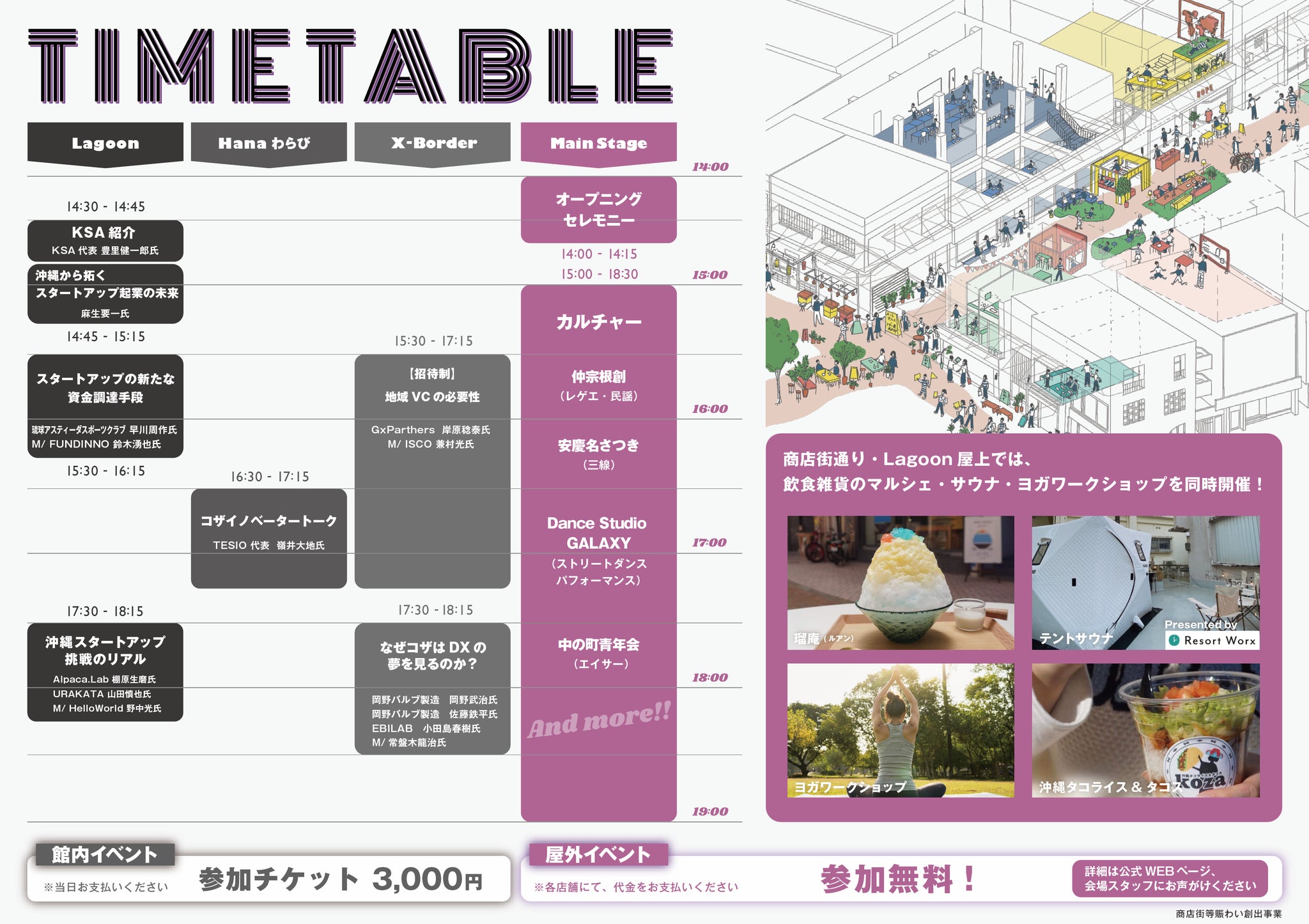 音楽、アート、エイサー、トークセッションで商店街一体をジャックしますよ!専用のイベントページも公開していますので、ぜひのぞいてみてください。
