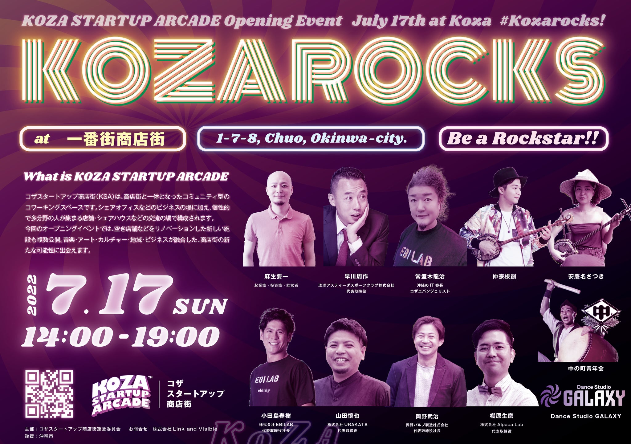 支援してくださった皆さまにぜひ来ていただきたいのが、7/17(日)開催・コザスタートアップ商店街オープニングイベント『Kozarocks!』です。