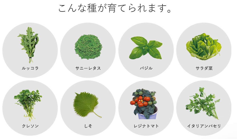 ※ホウレンソウなど育たない植物もあります。植物に必要な点灯時間(光の量)は、設置環境によっても異なります。成長が遅い場合は、点灯時間を長く設定してください