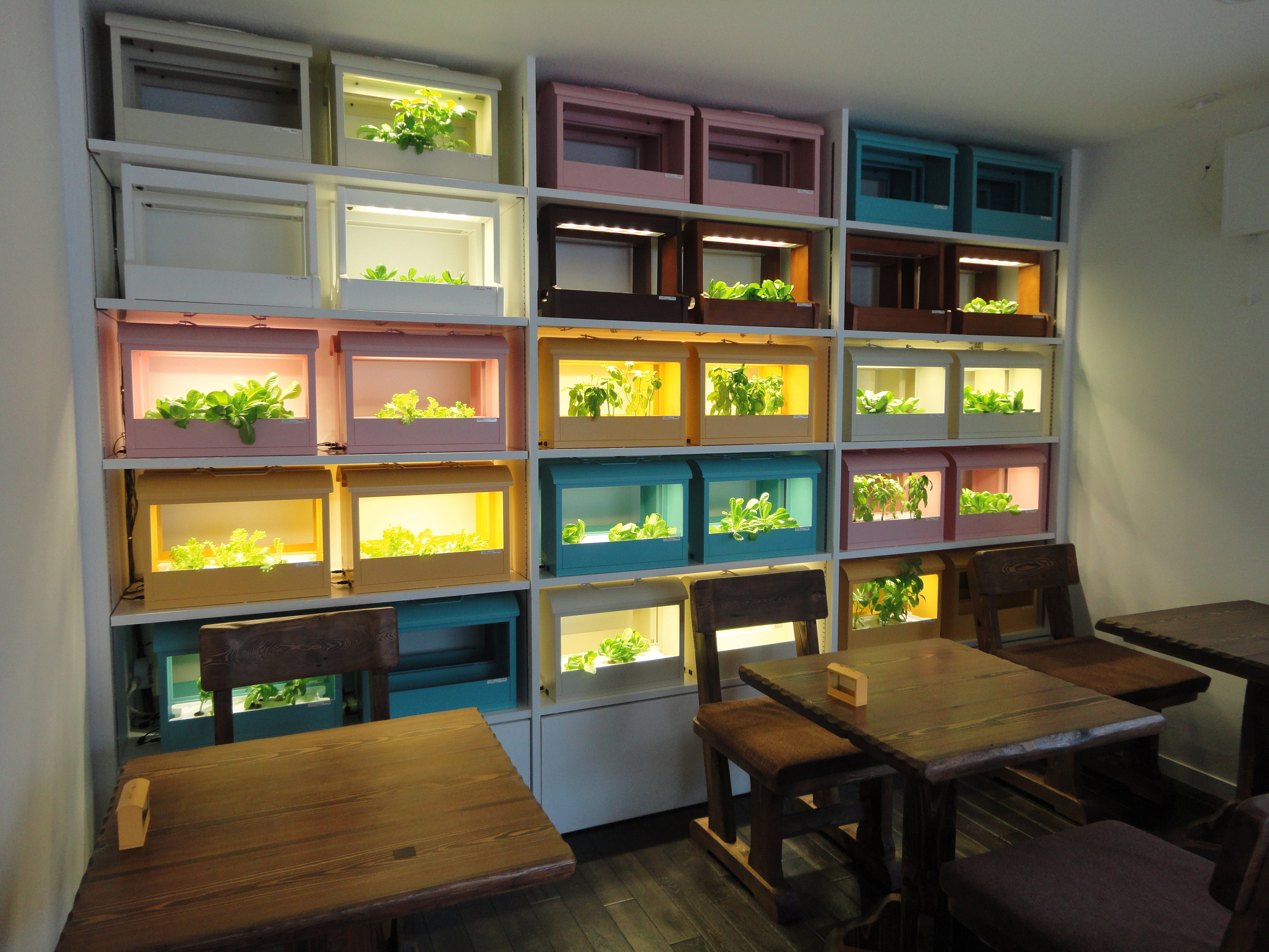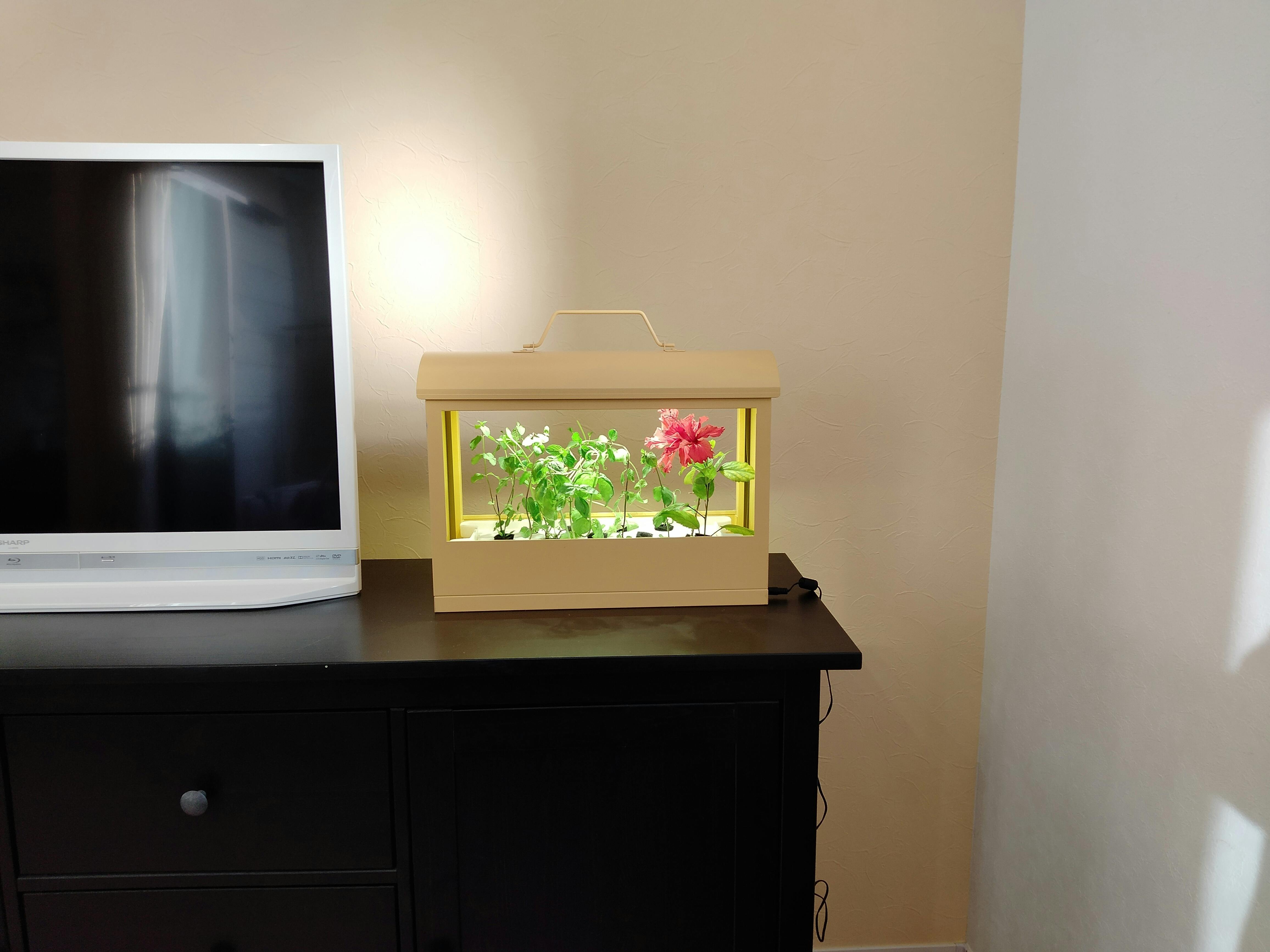 老人ホームにて、6台設置しています。毎日の成長を楽しみにしている方も多く、ホーム内での憩いの場となっています。足も悪くなかなか外に出られない方もお部屋の中で植物とのふれあいで気分転換されて癒されています。