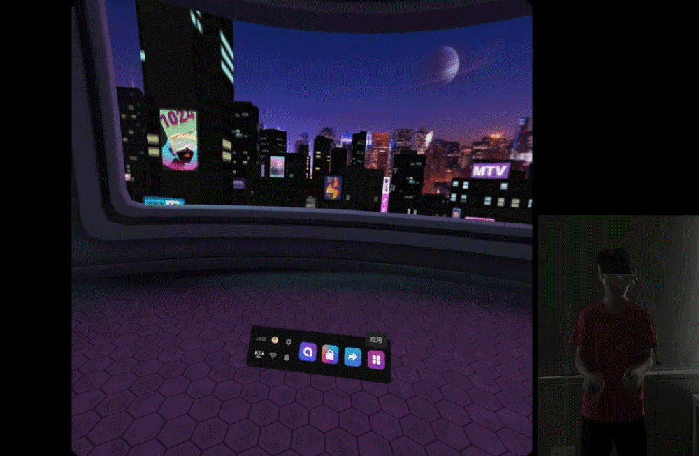 薄暗い屋内環境でも、arpara AIO 5Kのトラッキング安定性は変わらず素晴らしい結果になります。Launcherのインターフェースでは、システムの仮想シーンでの動きはほぼ現実と一致しており、以下のようにドリフトやジッターの問題はありません。