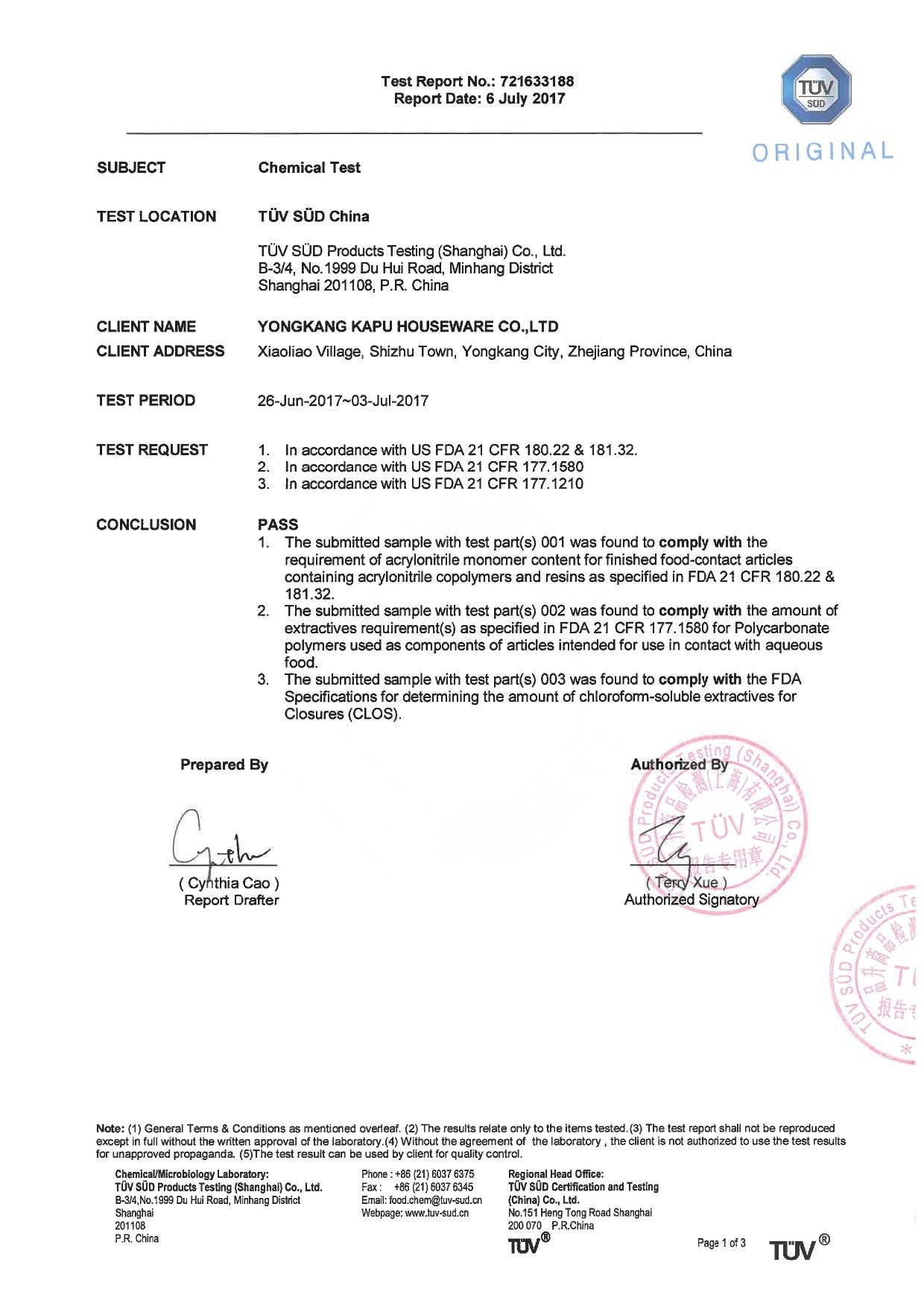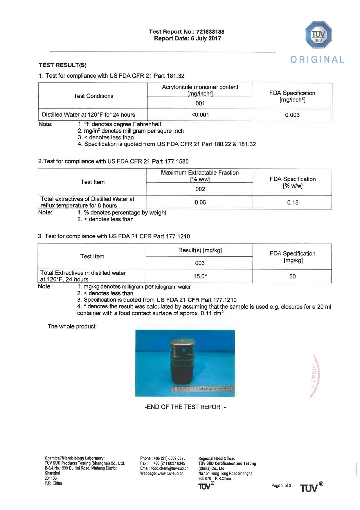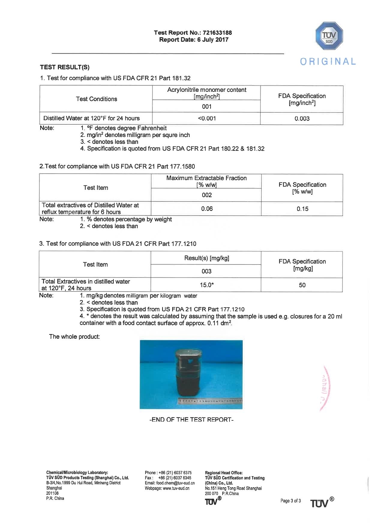 2,017年 7月 中国の国家的検査機関『Gmicro Testing』で安全性確認
