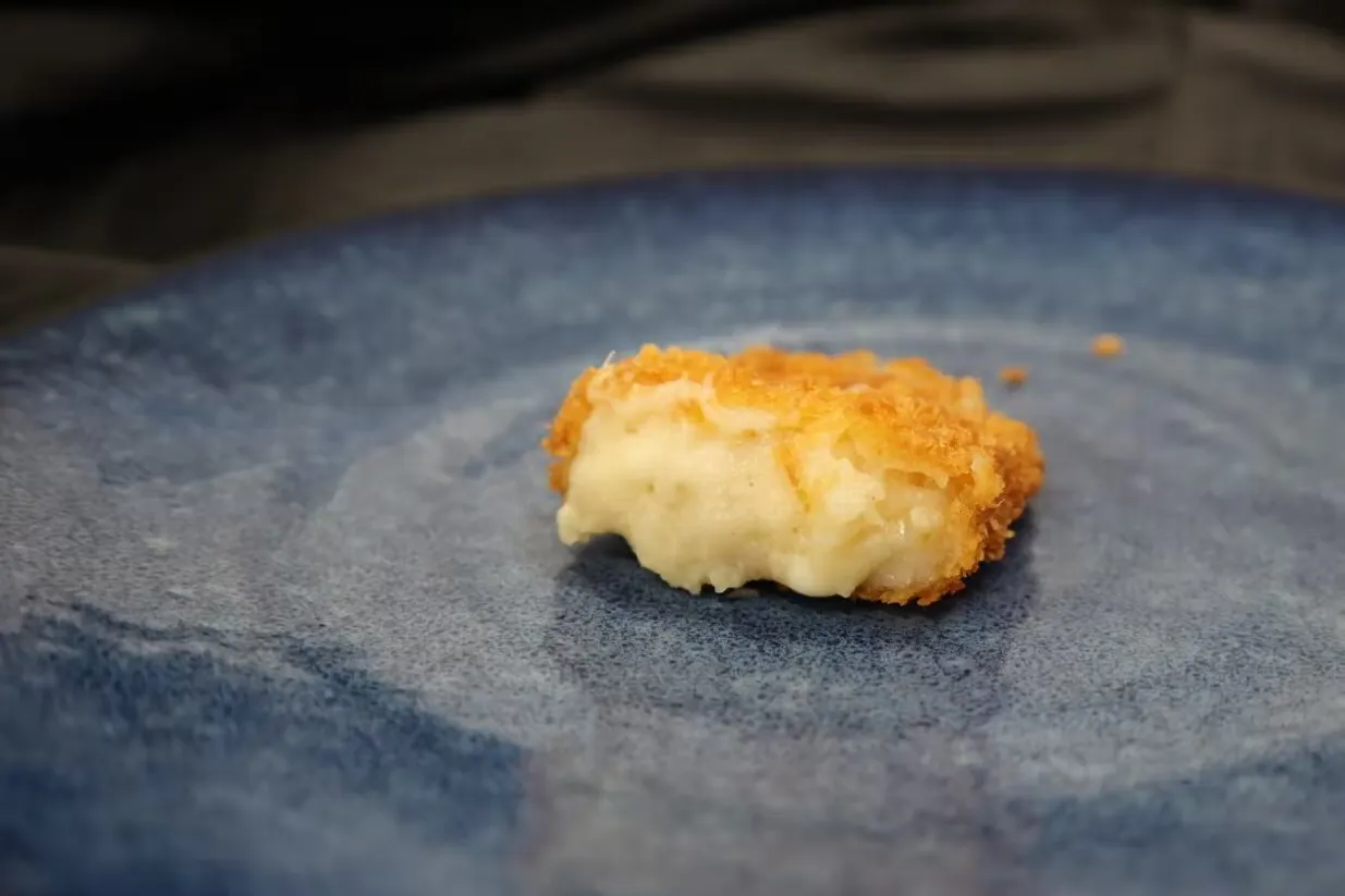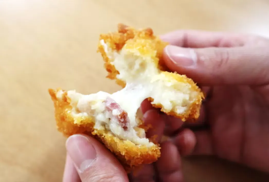 中には淡路島産玉ねぎと旨味の強いベーコンを配合し、美味しいグラタンをそのままコロッケにしたような味わい!