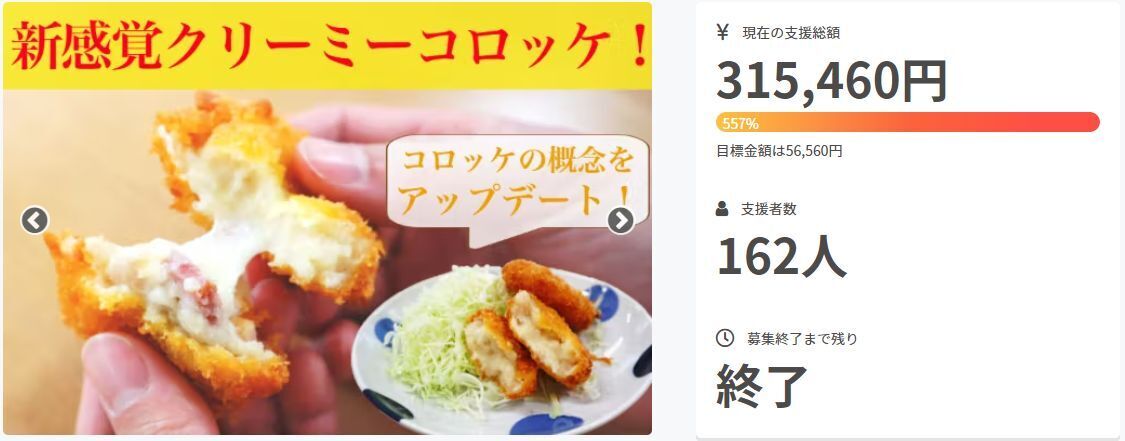 今回、コロッケ屋が考えた本気のクリーミーコロッケを皆様にお召し上がりいただきたい!!という想いのもとこの度クラウドファンディングにチャレンジいたしました!